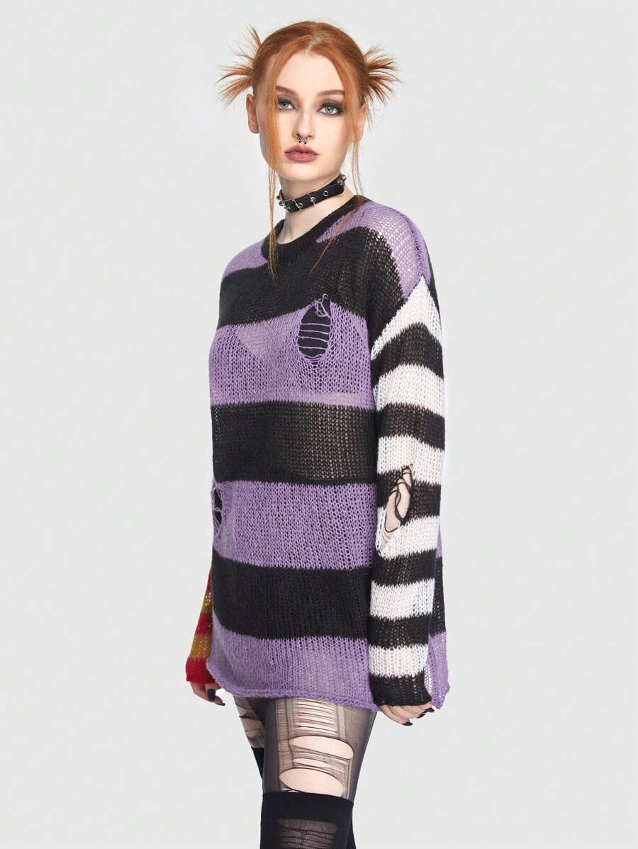 Grunge Punk Maglione Color Block A Righe Multicolor Per San Valentino
