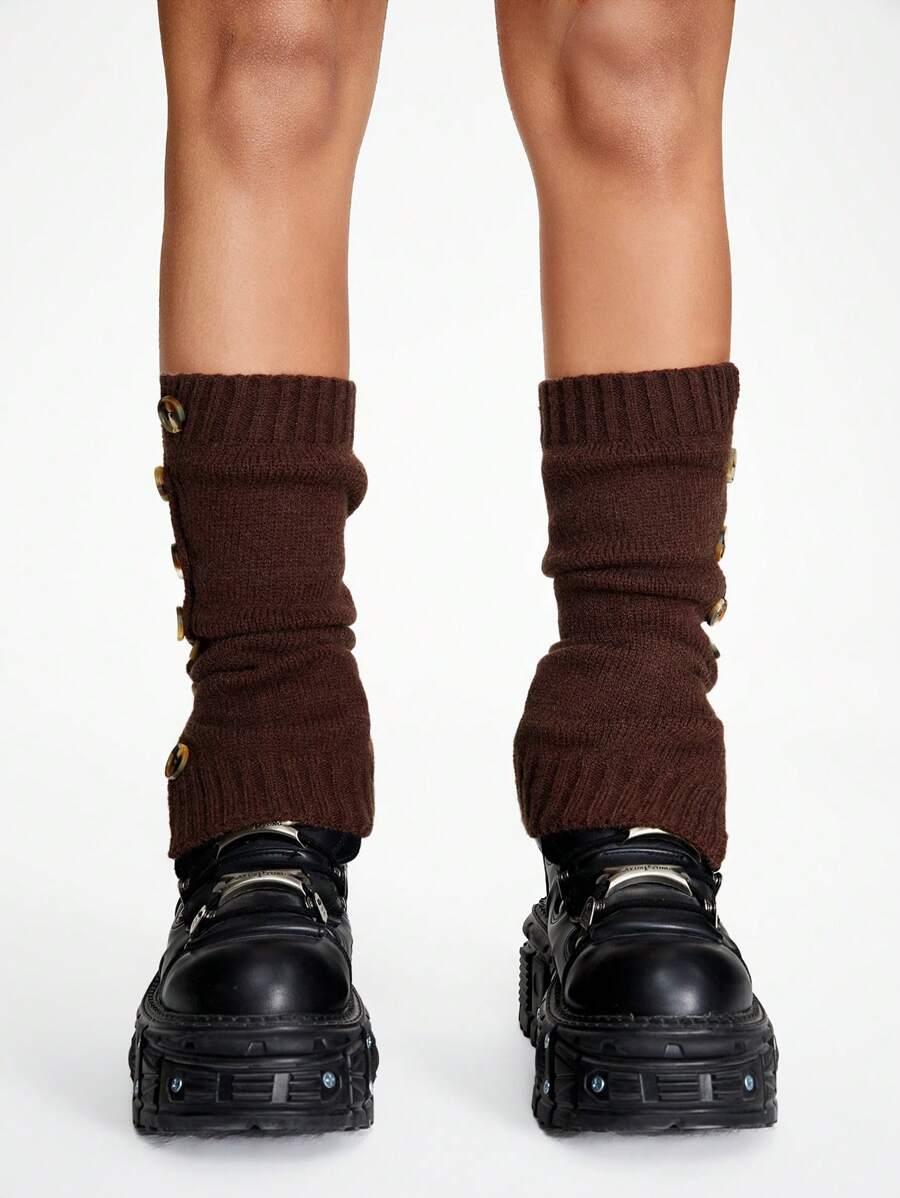 Grunge Punk Scalda gambe in maglia con fondo a campana e bottoni, polsini per le gambe che valorizzano e regolabili
