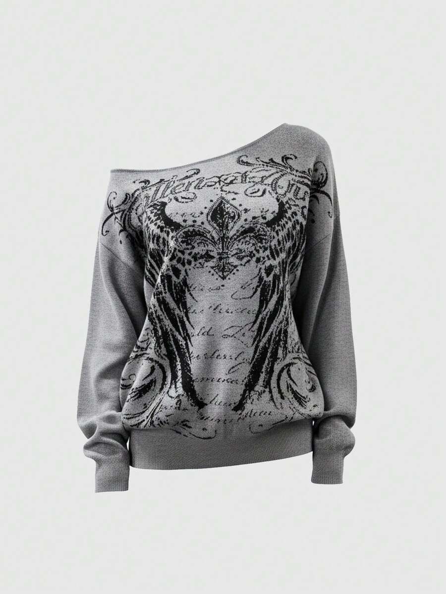 Grunge Punk Maglione asimmetrico ampio con motivo jacquard, stile vintage, adatto per festival musicali e feste, per donna