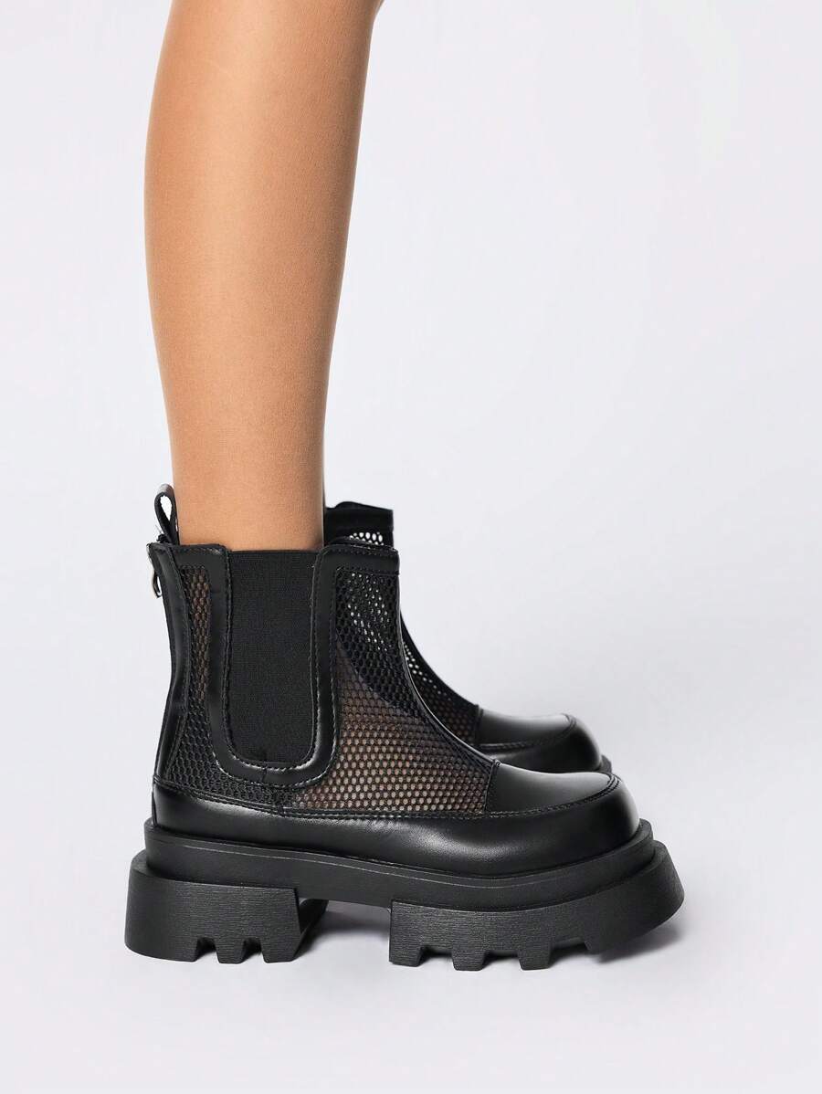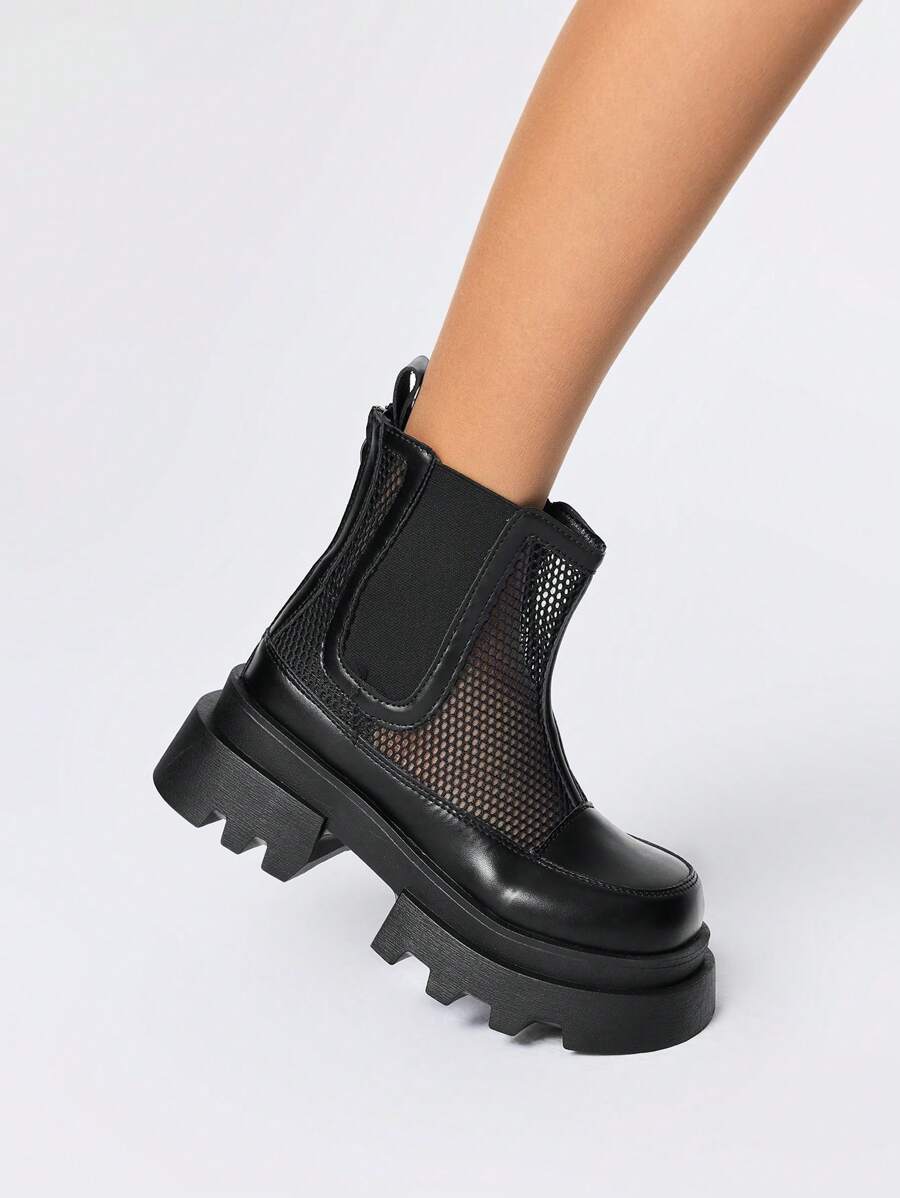 Grunge Punk Stivali da donna in rete traforata, con tacco alto platform, stivaletti corti in vera pelle versatili, per primavera/estate
