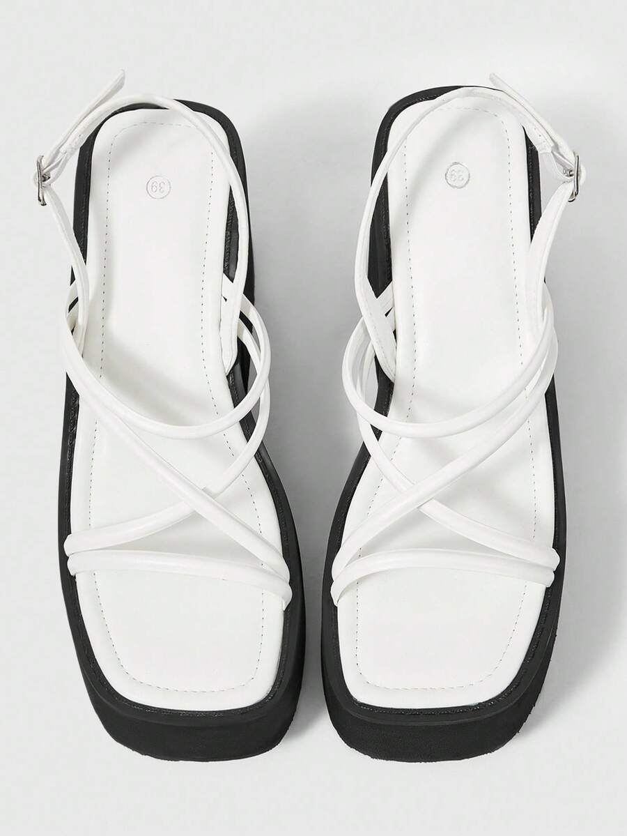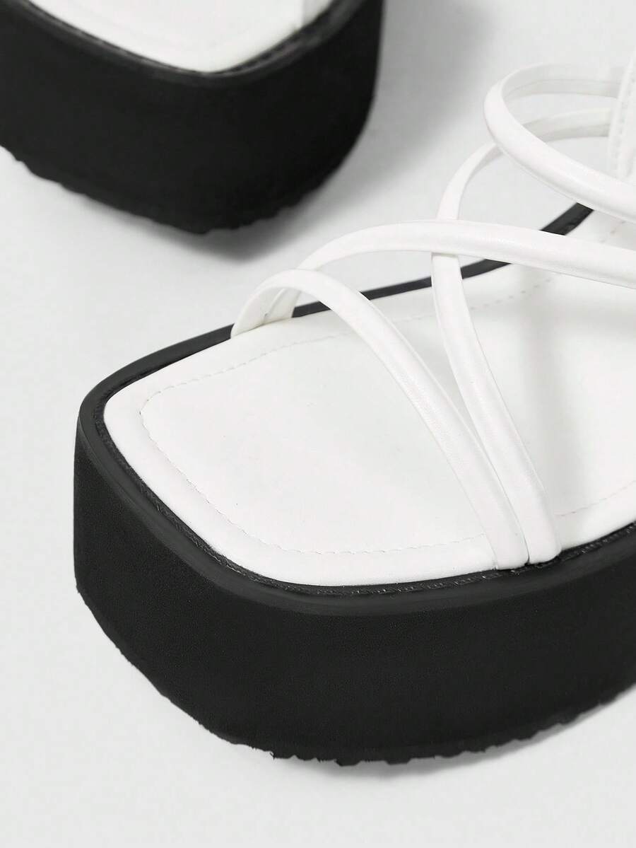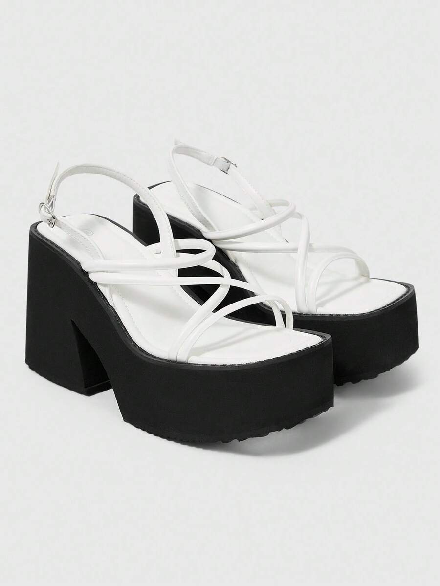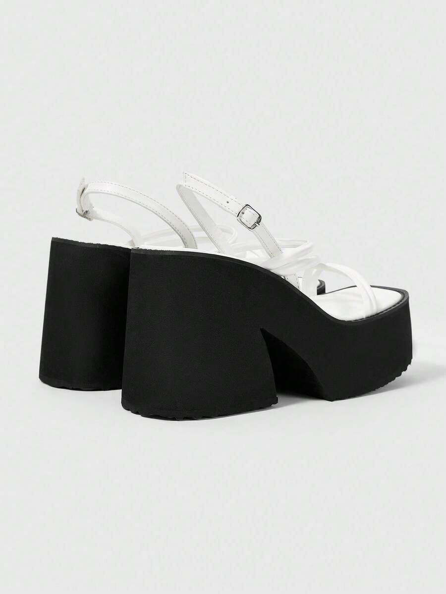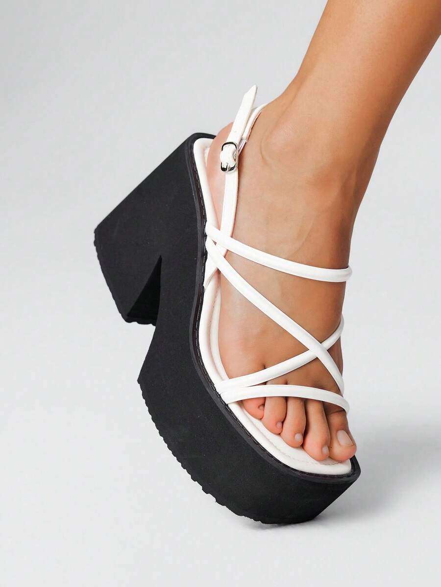 Grunge Punk Sandali da donna con punta quadrata e suola platform spessa, cinturino alla caviglia, stile punk con cinturini incrociati sottili e tacco alto chunky, scarpe comode per il lavoro, i pendolari e le feste