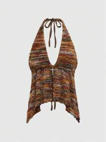 Grunge Punk Top canottiera da donna con design asimmetrico a uncinetto, decorato con inserto a croce, diamante, nastro e fiocco, sexy, adatto per vacanze estive in spiaggia, stile vintage occidentale