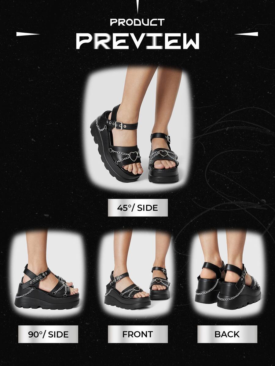 Grunge Punk Sandali di stile punk rock e gotico da donna, con catene decorative, punta aperta, per abito da festa, scarpe con zeppa e platform a forma di stella