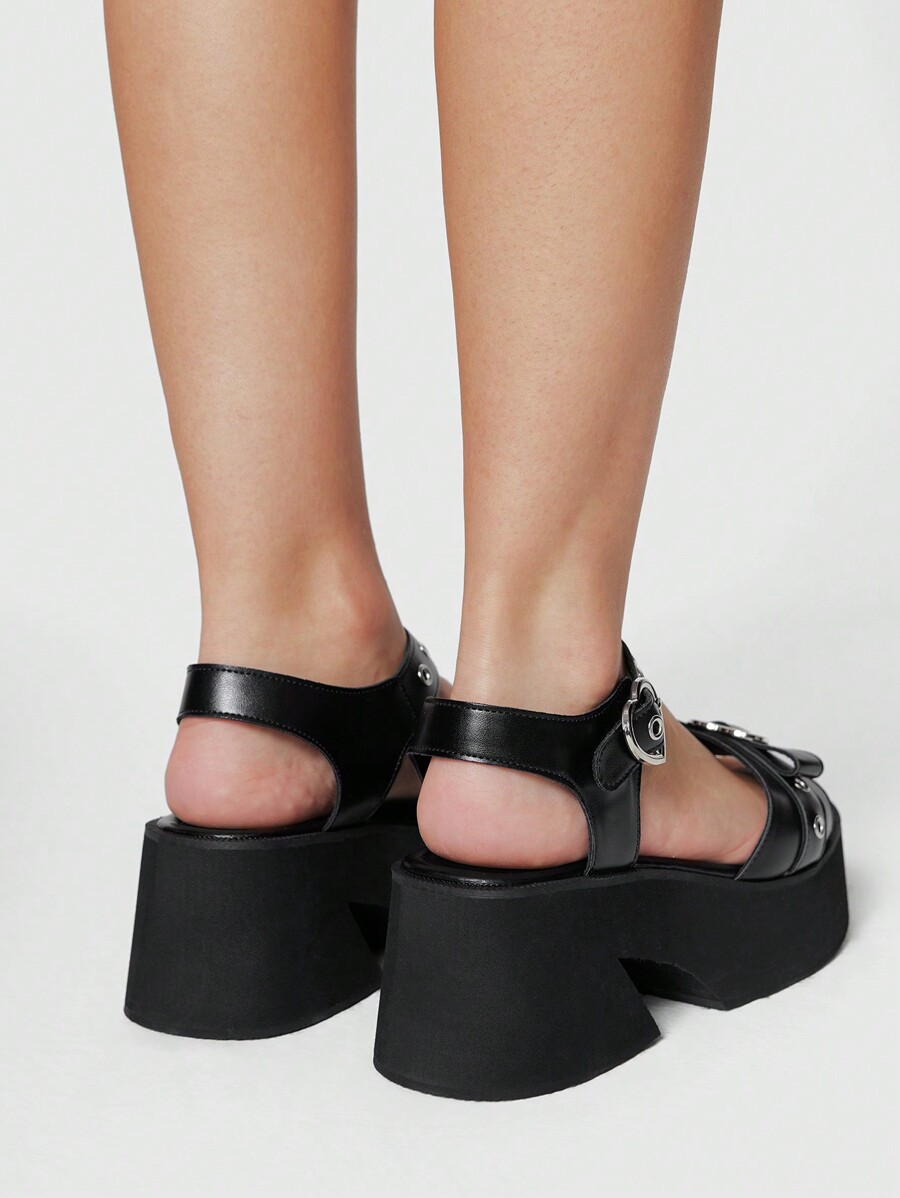 Grunge Punk Sandali da donna stile punk, con punta tonda, zeppa platform spessa, stile romano, con più cinturini e chiusura con fibbia, adatti per foto di laurea e occasioni professionali