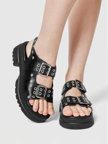 Grunge Punk Sandali con tacco zeppa da donna con cinturini incrociati stile rock punk, fibbie gotiche, punta aperta, stile romantico, con rivetti, adatti per le vacanze