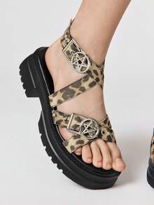Grunge Punk Sandali da spiaggia neri alla romana da donna, sandali punk rock con catena scura per feste, sandali estivi con zeppa e punta aperta, con borchie, stile gotico, scarpe da vacanza