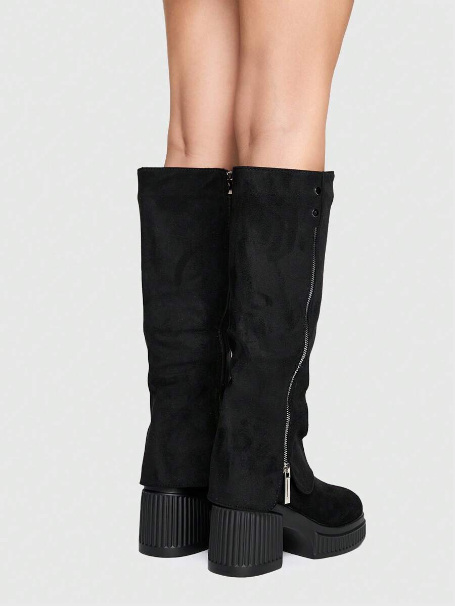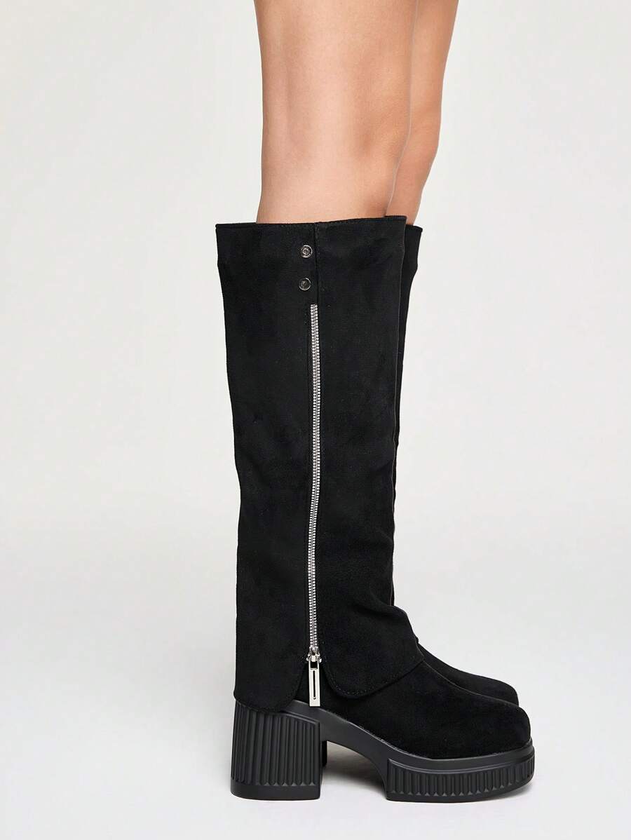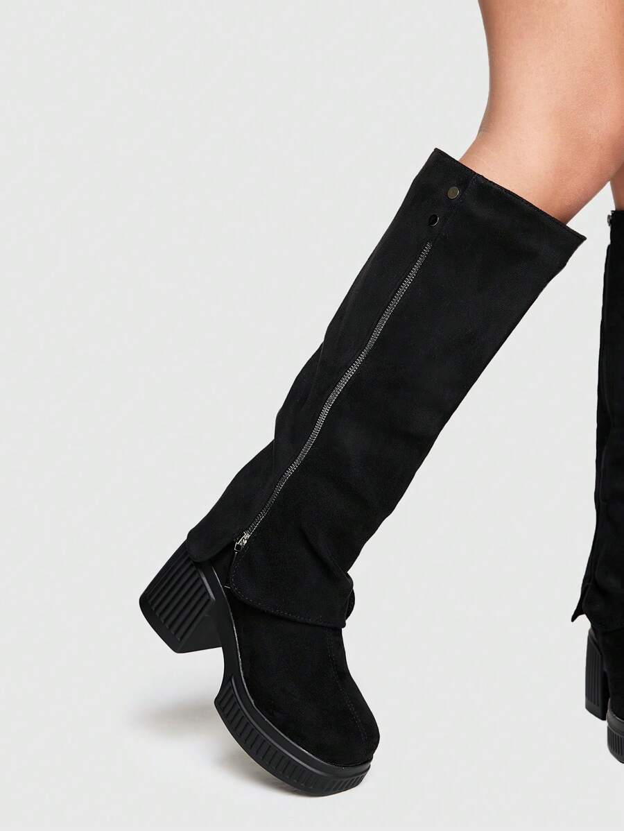 Grunge Punk Stivali alti sopra il ginocchio da donna neri, stivali western con tacco squadrato e cerniera laterale, stivali alti con plateau in stile gotico punk per Capodanno e vacanze