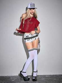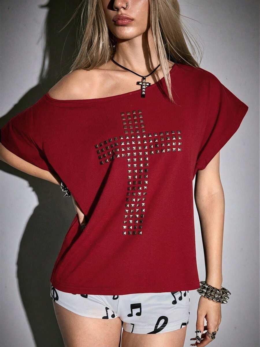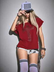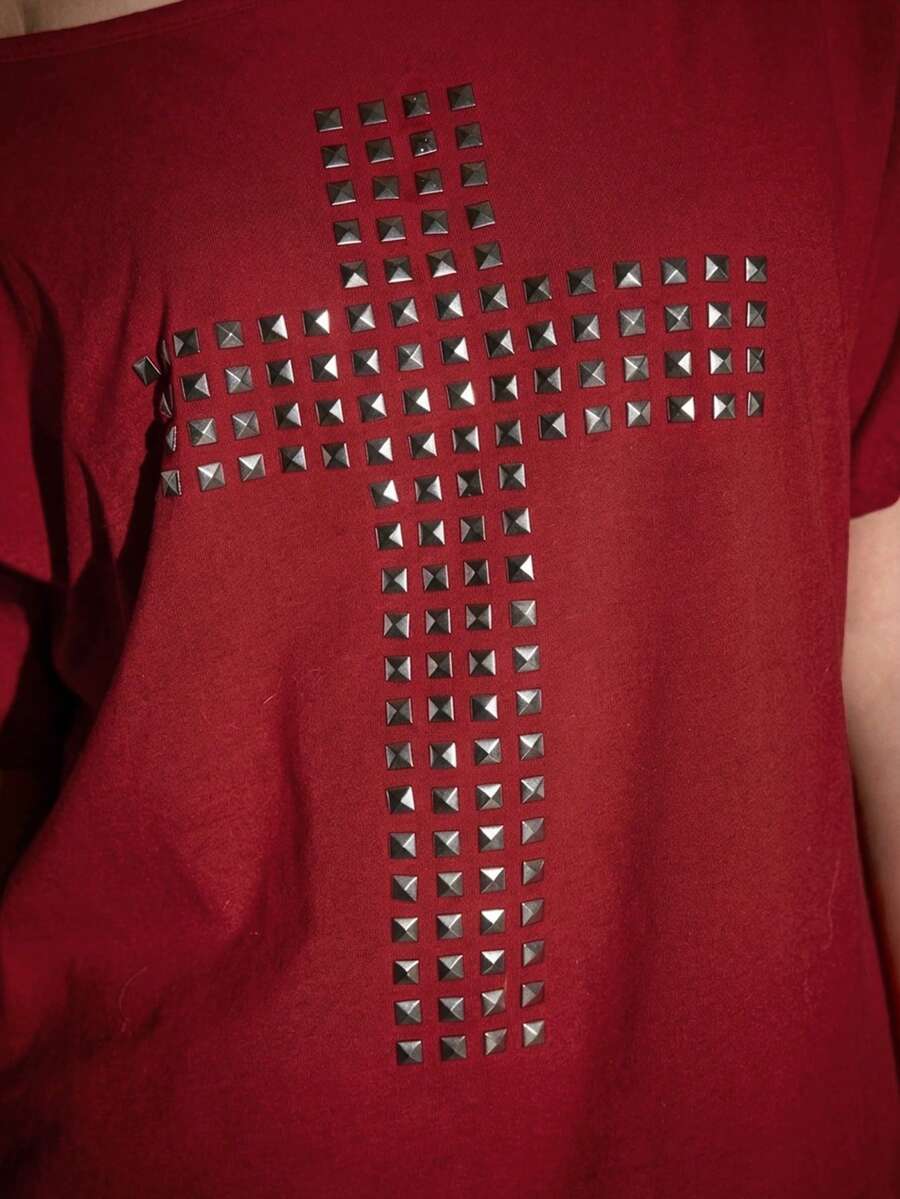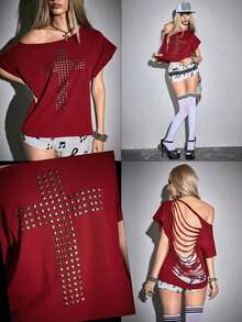 Grunge Punk Blusa casual da donna con schiena traforata e incrocio, versatile per appuntamenti e uscite