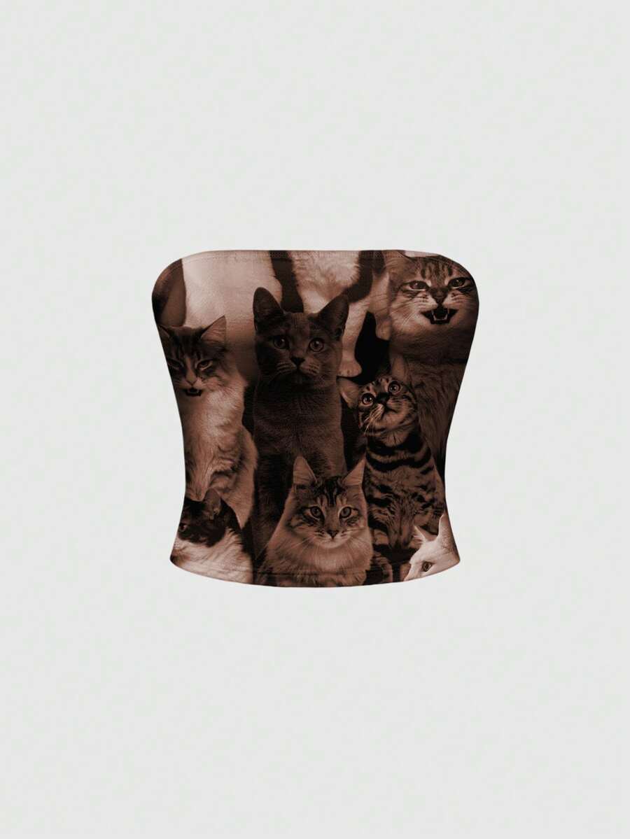 Grunge Punk Top tubo casual e versatile da donna con stampa di gatti
