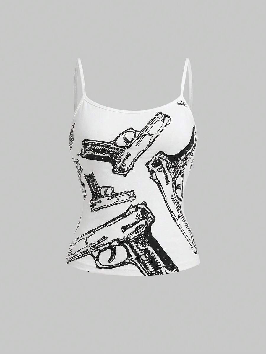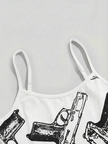 Grunge Punk Canotta casual versatile da donna con stampa di pistola per uso quotidiano