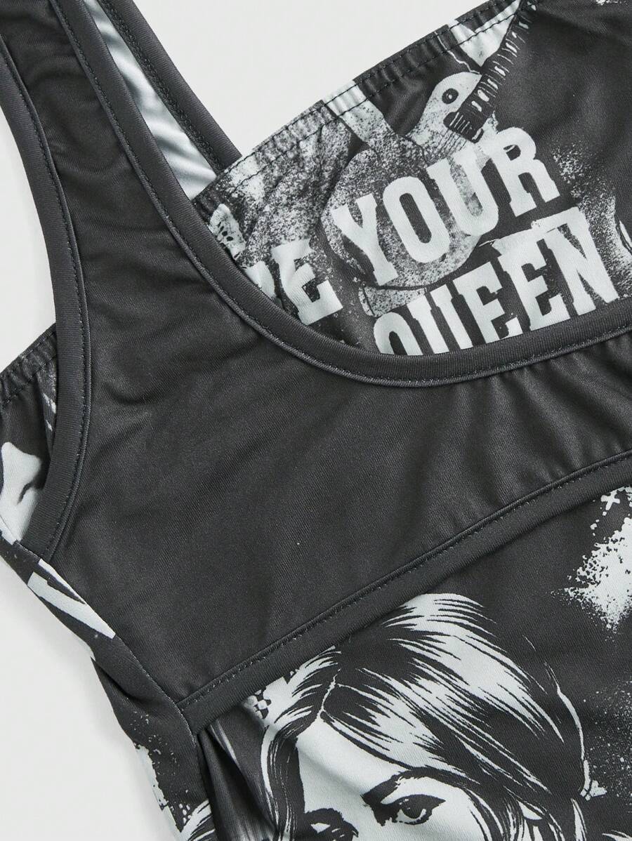 Grunge Punk Maglietta senza maniche da donna con motivo a blocchi di colore con ritratto e lettere