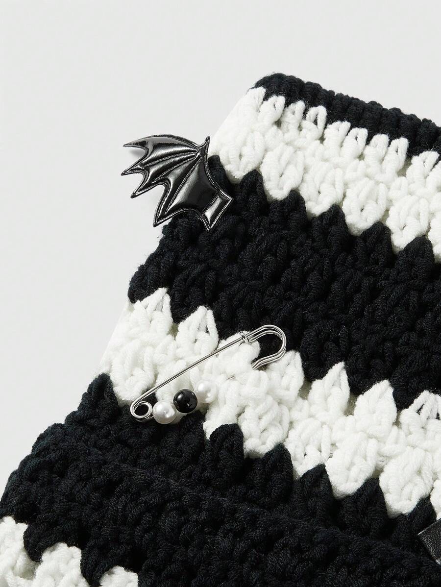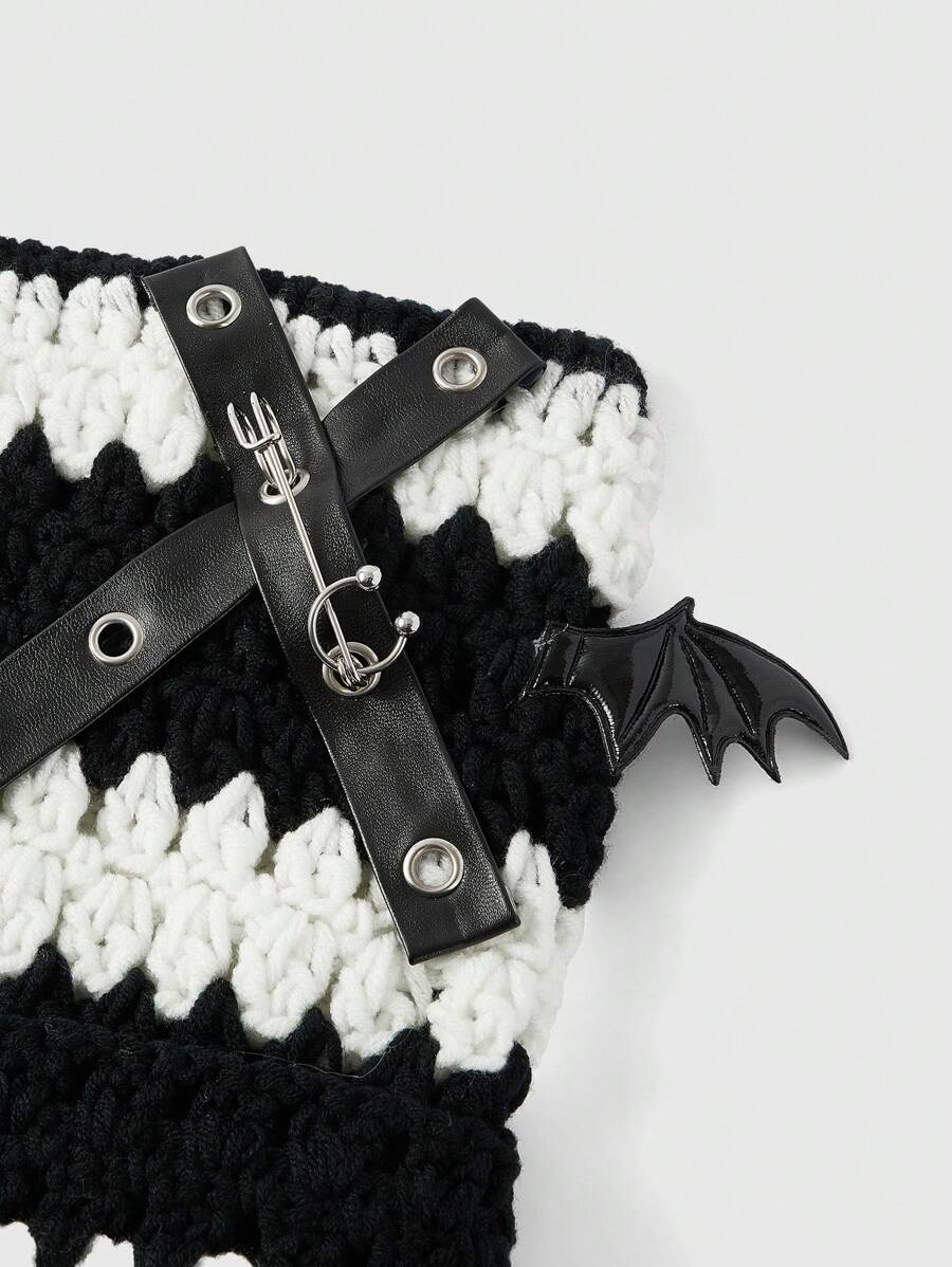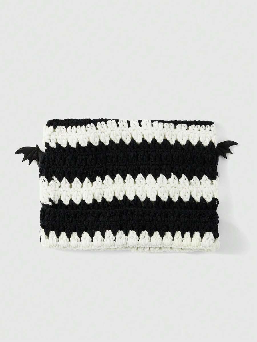 Grunge Punk Cappellino a cuffia in maglia testurizzata, stile carino, basico, Y2K, da strada, con corna demoniache, adatto per look casual e scolastici da donna
