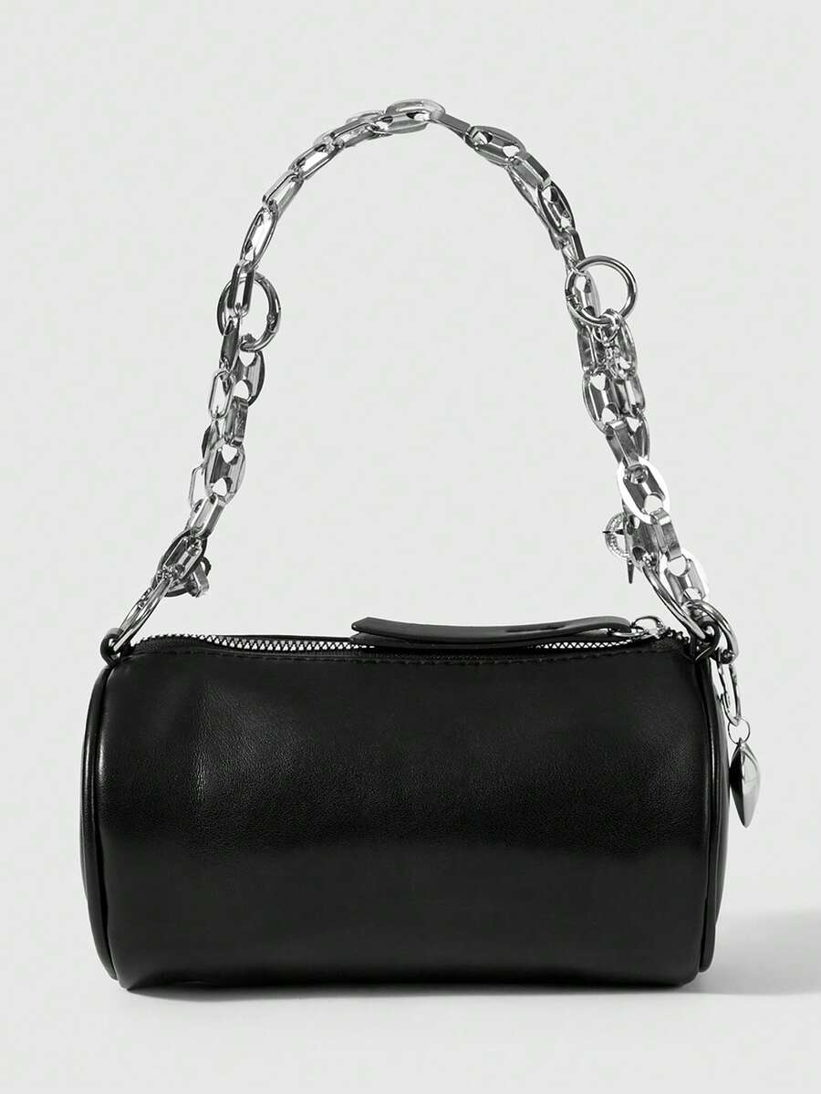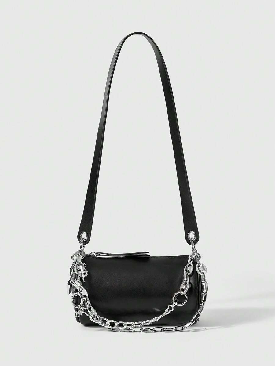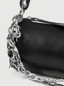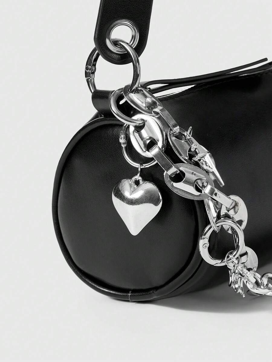Grunge Punk Borsa a tracolla da donna alla moda con ciondolo a catena e fiocco, adatta per l'uso quotidiano