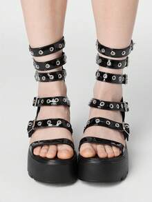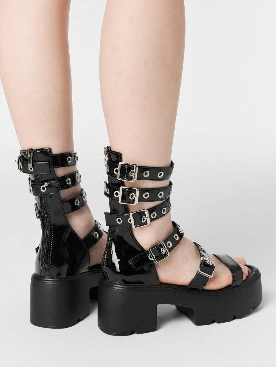 Grunge Punk Sandali da donna stile gotico, rock, punk e romano, con cinturini in pelle, punta aperta, platform e tacco alto spesso, adatti per l estate, la spiaggia e l abito, ideali per Ognissanti
