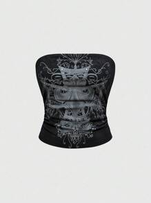 Grunge Punk Maglietta da donna con decorazioni in strass a croce scura, adatta per essere indossata a strati in autunno/inverno