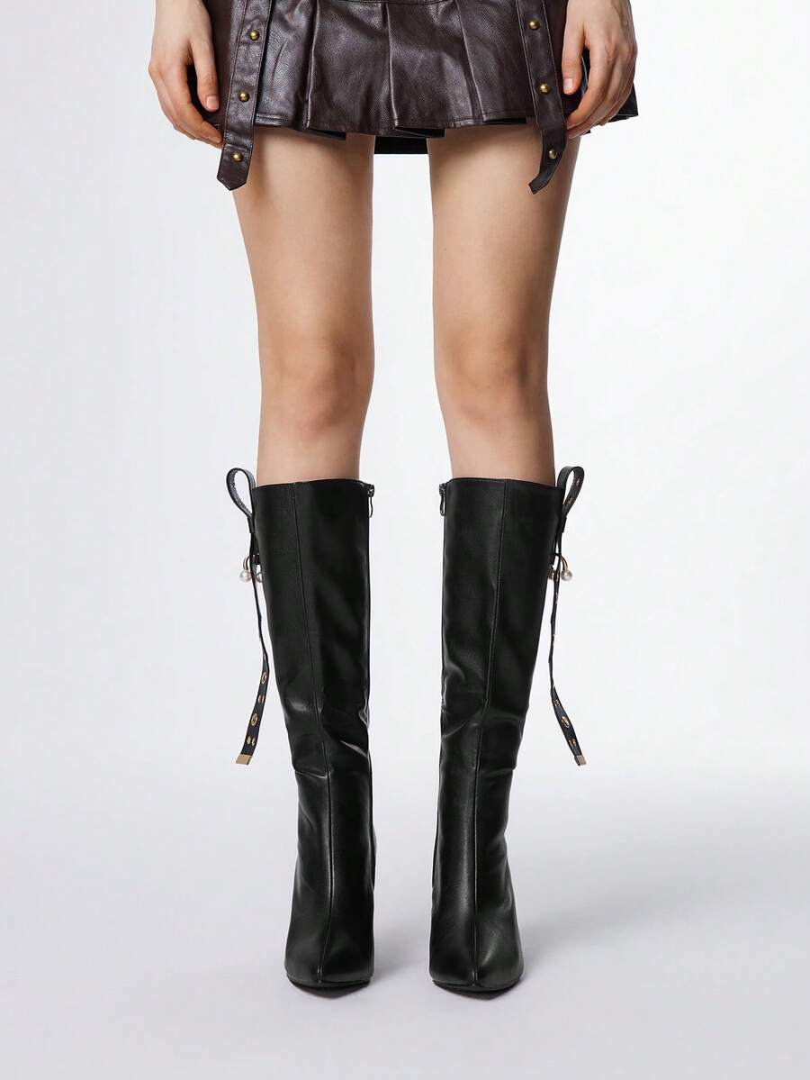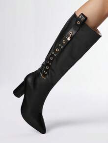 Grunge Punk Stivali con tacco alto da donna, eleganti e versatili con punta affusolata, realizzati in PU con tacco spesso, adatti per l'autunno/inverno