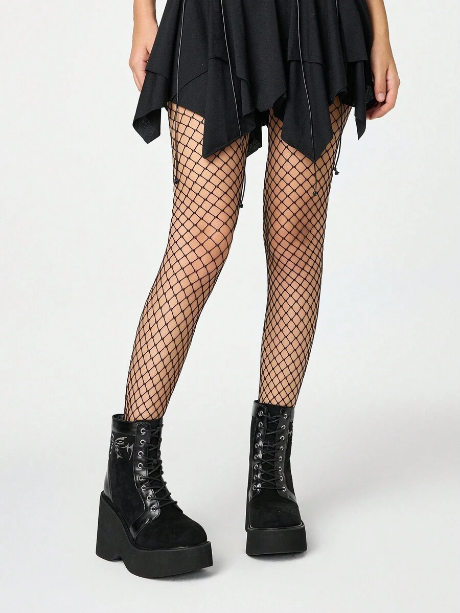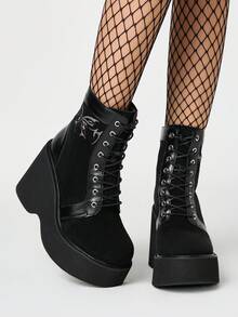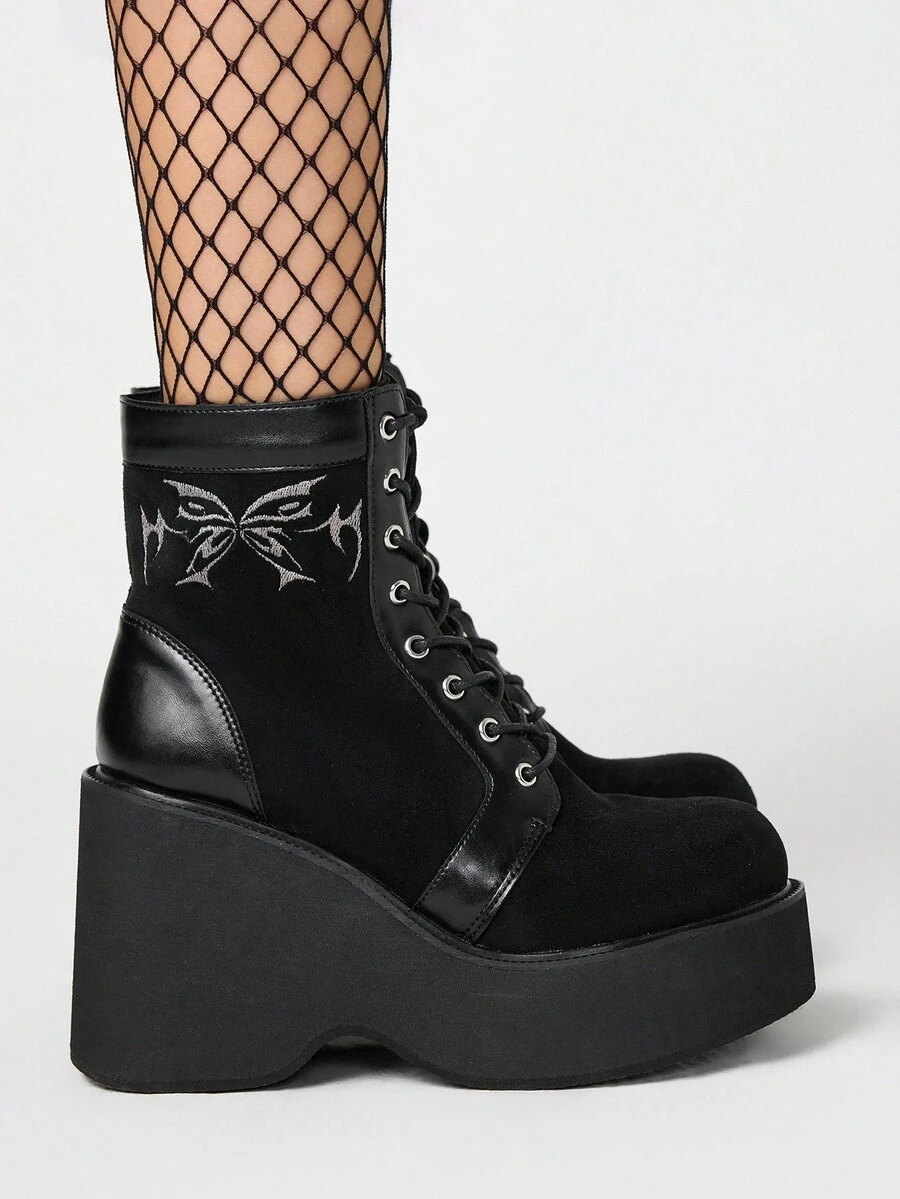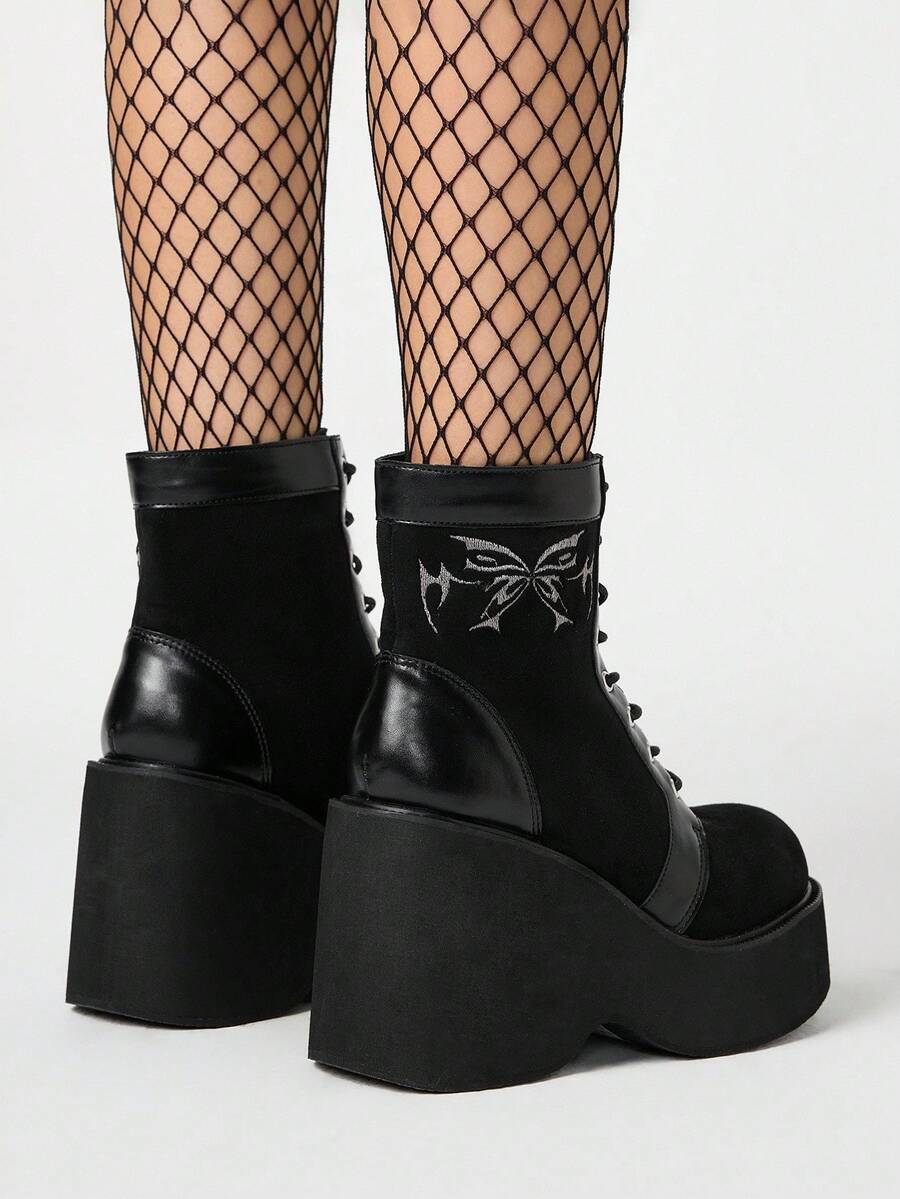 Grunge Punk Stivaletti alla caviglia da donna con lacci e suola spessa, stile gotico punk, con motivo ricamato, con tacco platform e tacco chunky