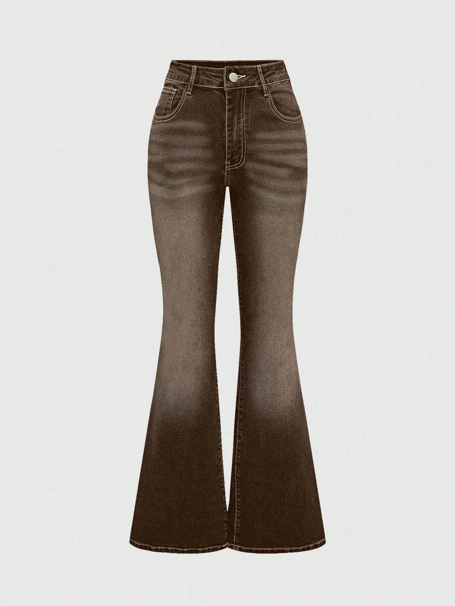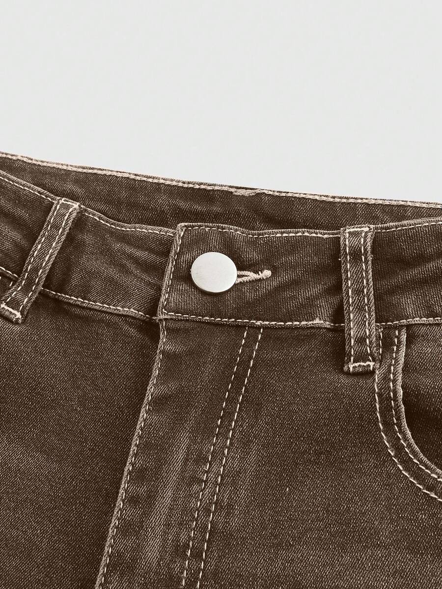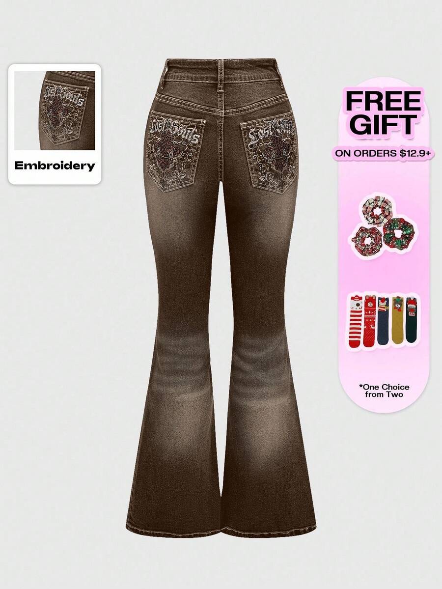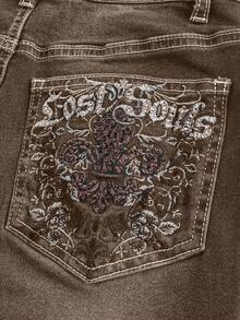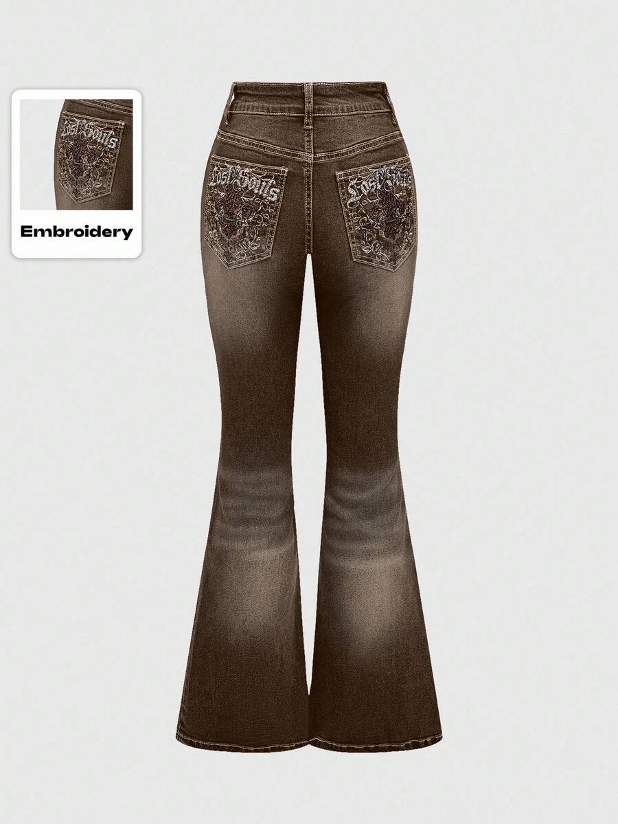 Grunge Punk Jeans skinny a zampa con tasche ricamate a motivo leopardato per donna