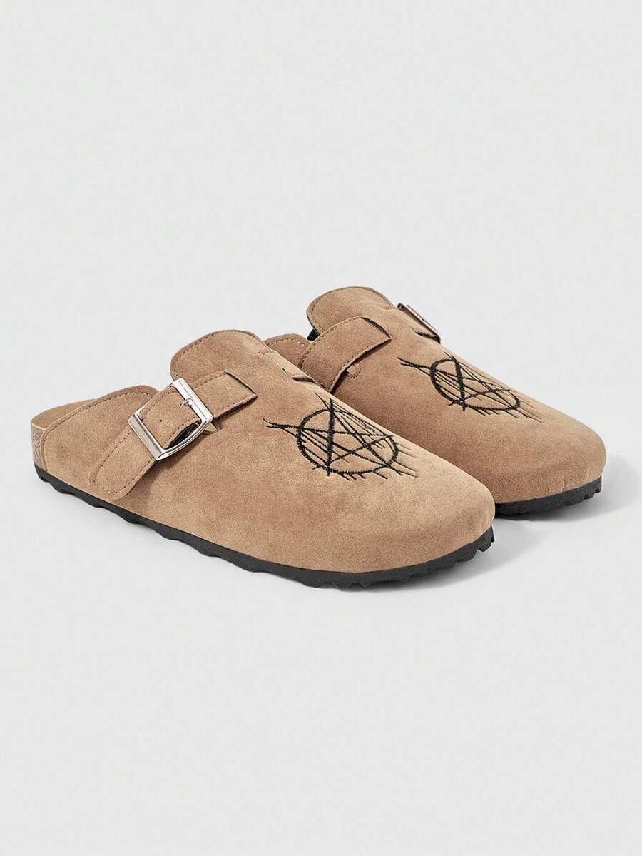 Grunge Punk Scarpe da donna tipo mulo, stile punk gotico, con punta chiusa e design traforato, suola morbida, sandali piatti da esterno