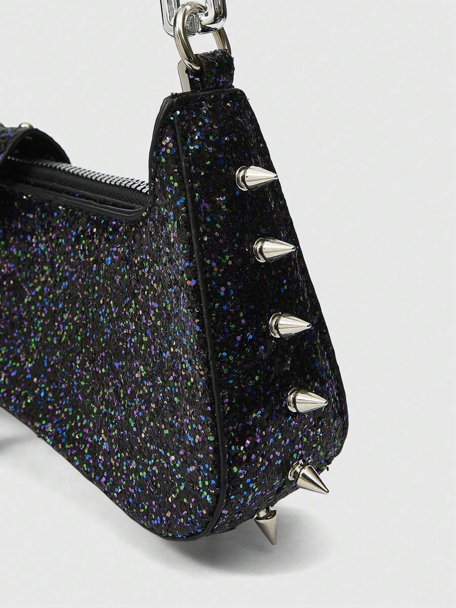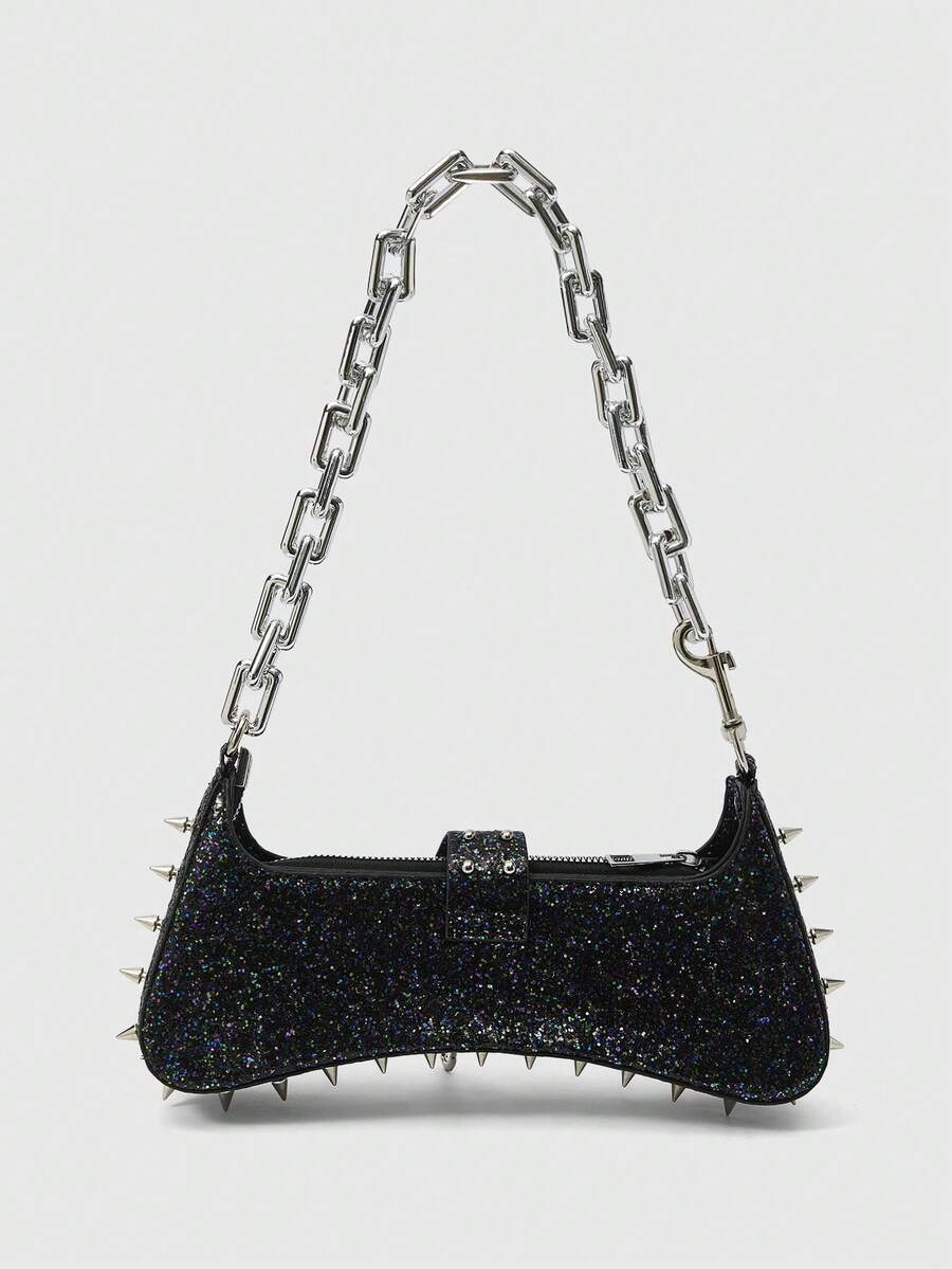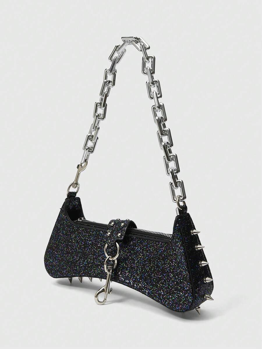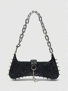 Grunge Punk Borsa a spalla da donna con borchie, stile punk, con cinghie in catena acrilica - Borsa da città stile urban streetwear per uso quotidiano