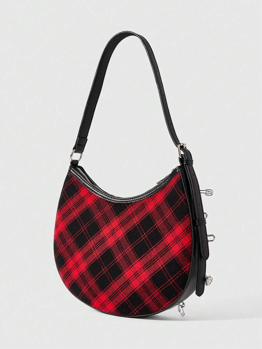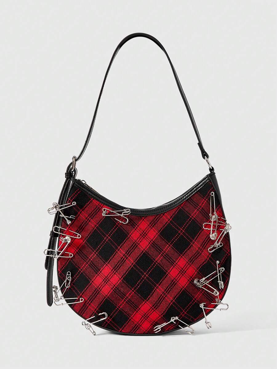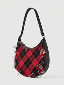 Grunge Punk Borsa a spalla da donna in stile punk con design a spilla scozzese