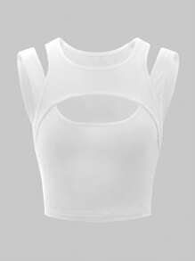 Grunge Punk Canotta bianca Sexy Deconstructed design scavato per donna