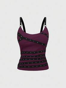 Grunge Punk Canotta da donna senza maniche, sexy e con schiena scoperta, con spalline a spaghetti, decorata con strass, adatta per l estate, spiaggia, laurea, Pasqua, concerti, vacanze a Nashville, festival musicali, rock