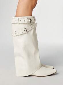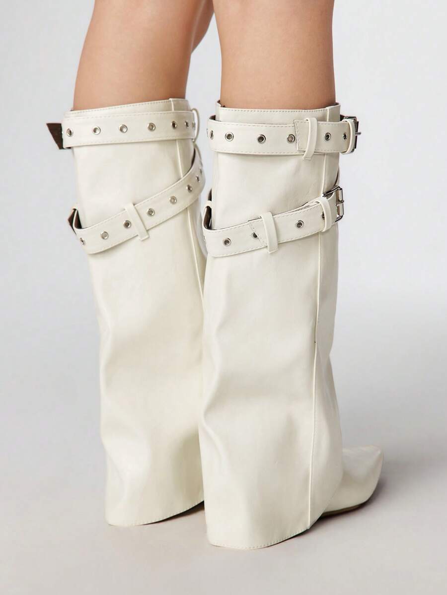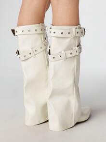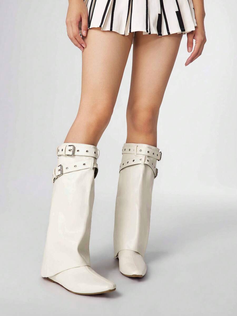Grunge Punk Stivali alti da donna con punta quadrata, stivali tubolari, stivali retrò con zeppa nascosta per autunno/inverno, stivali versatili al ginocchio