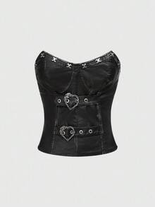 Grunge Punk Top corto fasciante in PU con design a rivetti, stile punk Y2K per donne