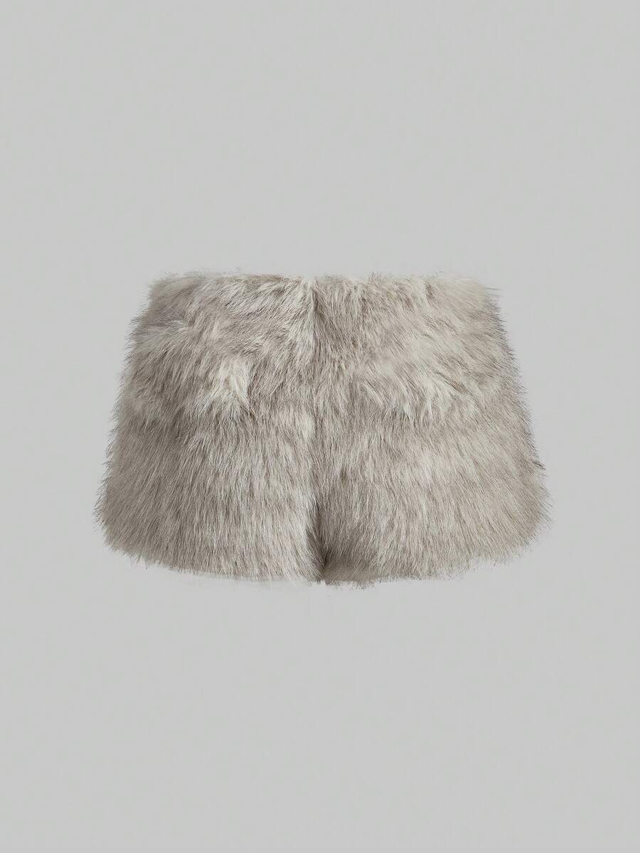 Grunge Punk Pantaloncini mini vita bassissima in finta pelliccia stile Y2K Baddie