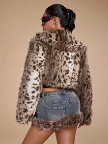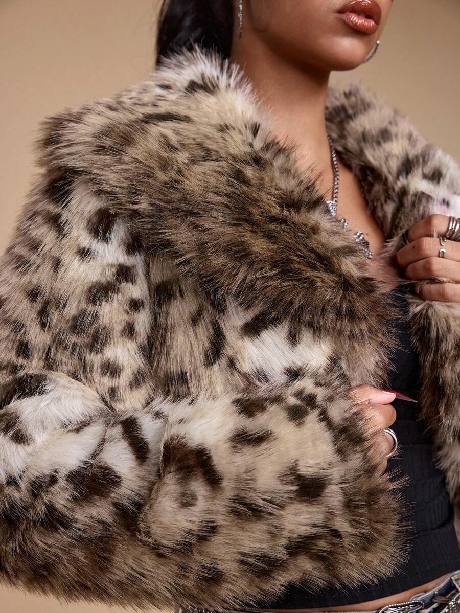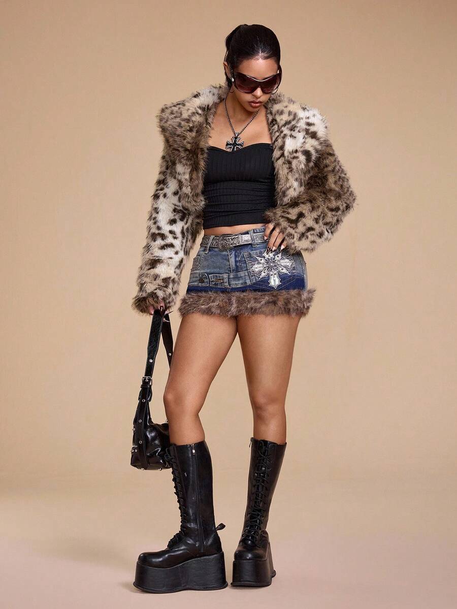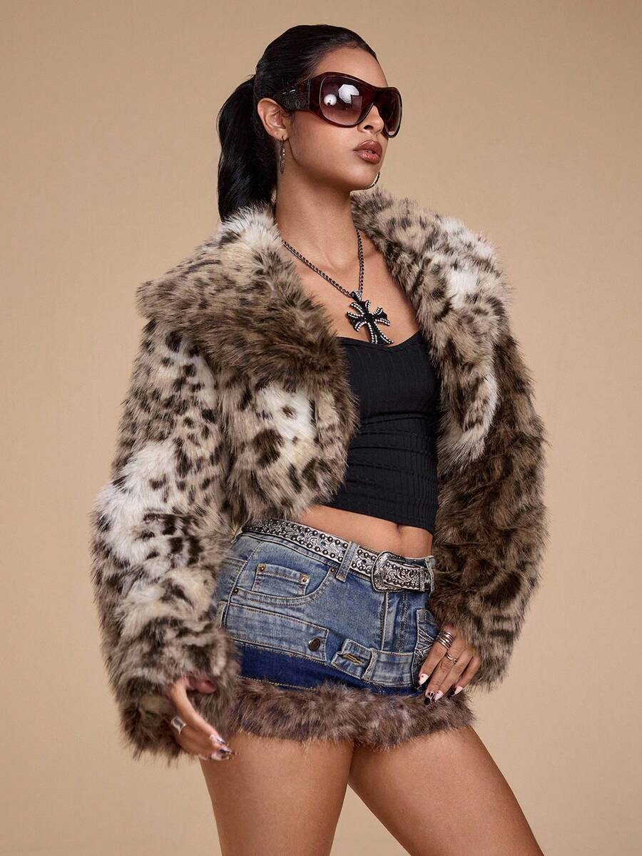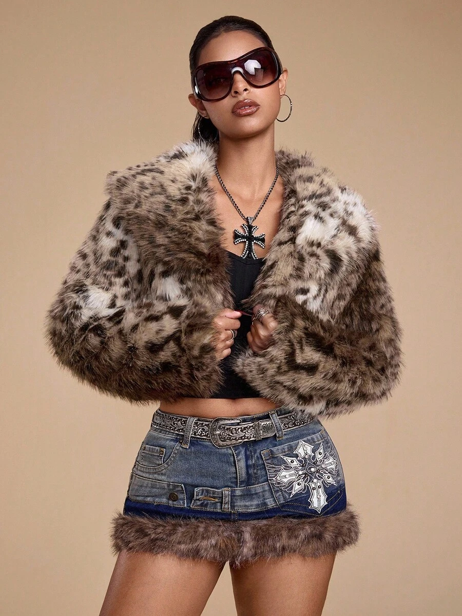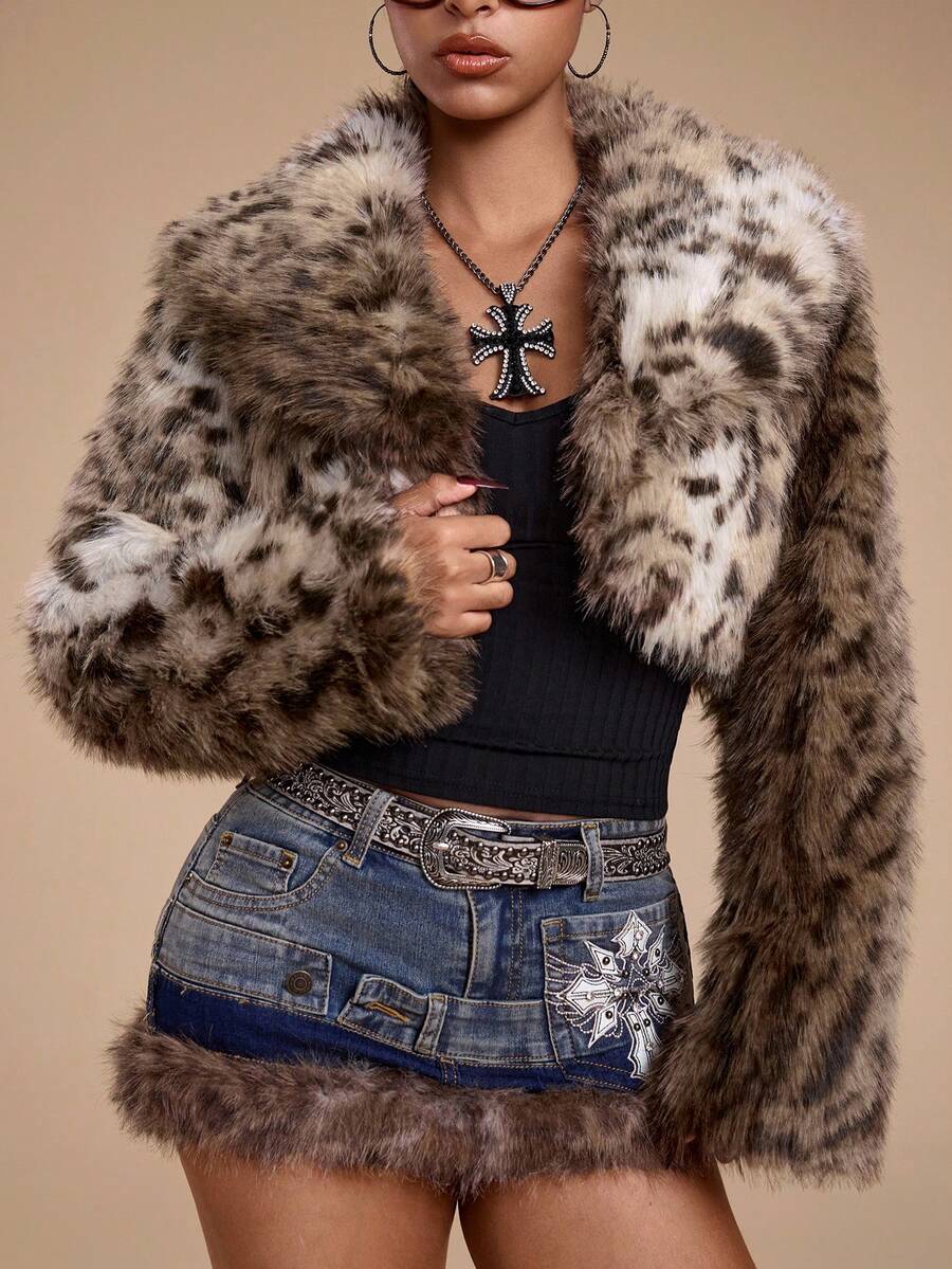 Grunge Punk Giacca corta in pelliccia sintetica con stampa leopardata in stile Y2K