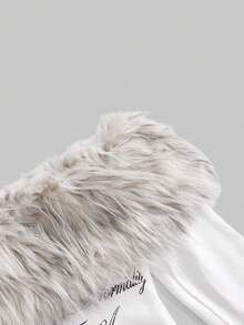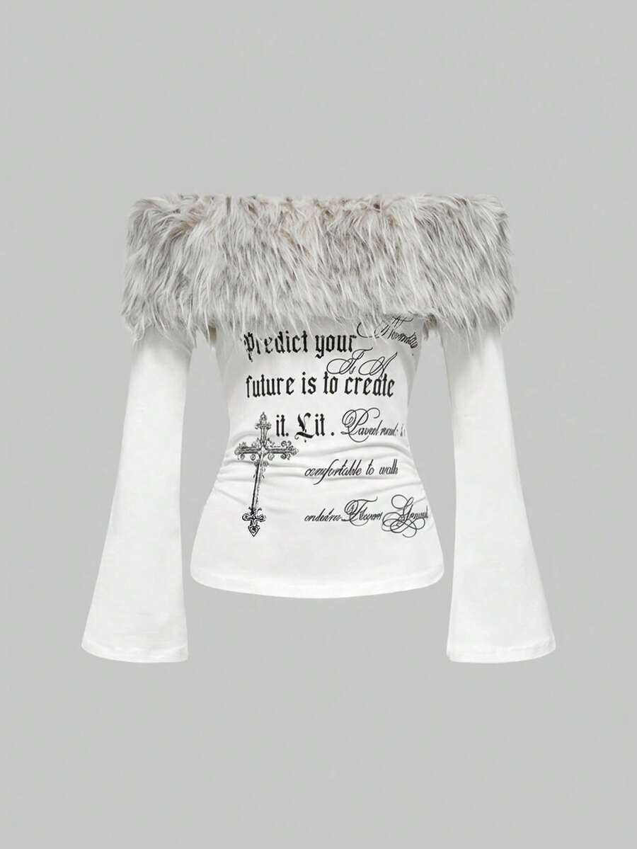 Grunge Punk Maglietta aderente a spalle scoperte con stampa slogan e pelliccia di leopardo delle nevi, in stile Y2K
