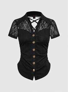 Grunge Punk Canotta con schiena scoperta e incrocio al collo in stile Harajuku Gal Y2K per donne