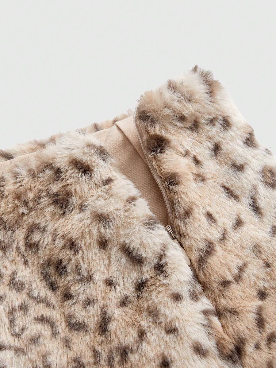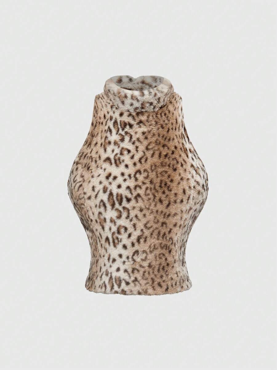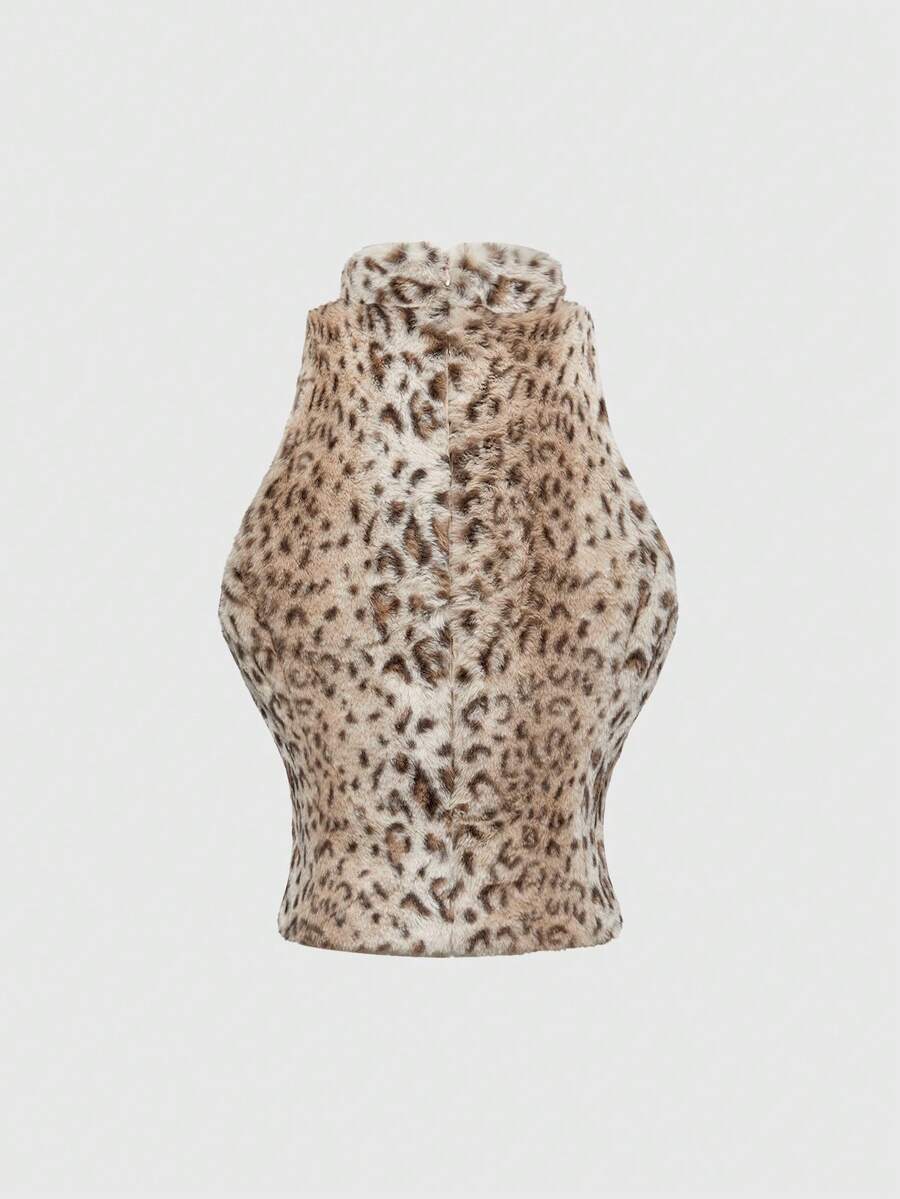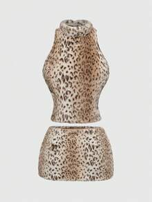 Grunge Punk Set da 2 pezzi composto da top corto e gonna mini in pelliccia con stampa leopardata in stile Y2K
