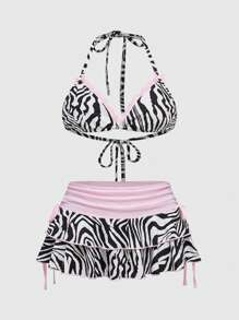Grunge Punk Set da 2 pezzi con top corto a collo alto a motivo zebrato e gonna mini arricciata in vita alta, stile Y2K, taglie forti, sexy
