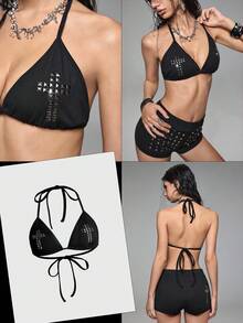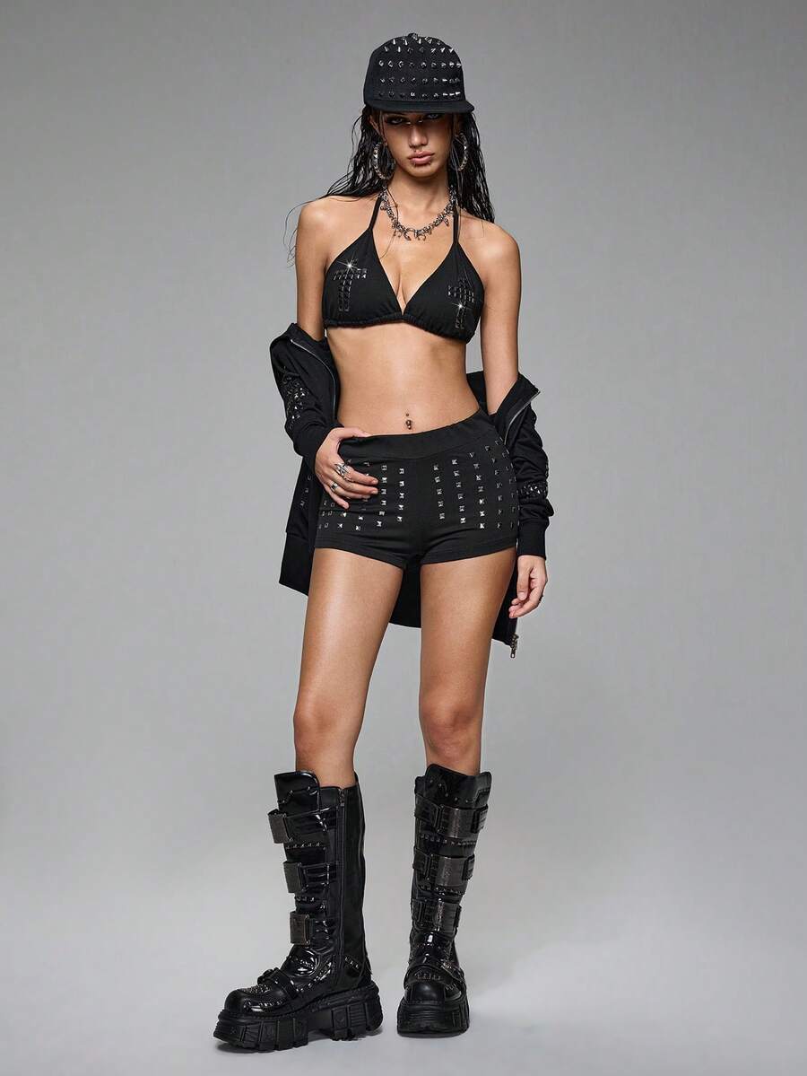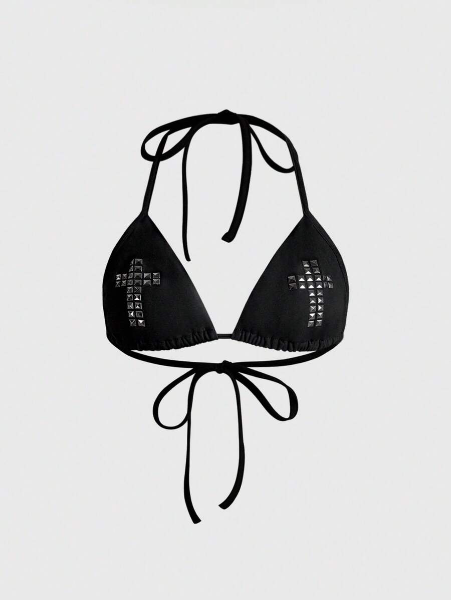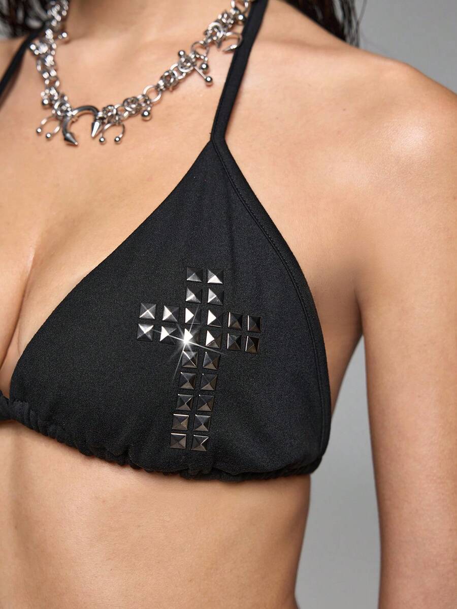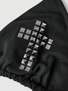 Grunge Punk Top corto stile punk Y2K con toppe quadrate a croce e borchie, adatto per festival musicali