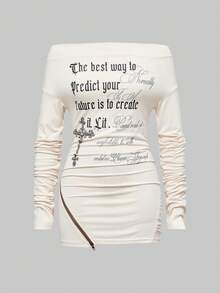 Grunge Punk Top a collo alto a maniche lunghe aderente in maglia stile retrò punk Y2K per donna