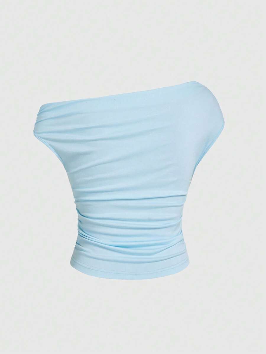 Grunge Punk Maglietta da donna con spalle strette e arricciature, stile Y2K Shibuya Girl Millennium Retro Revived