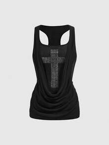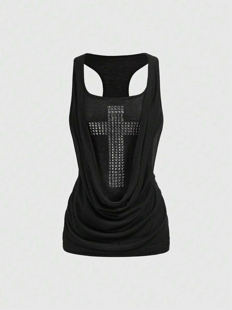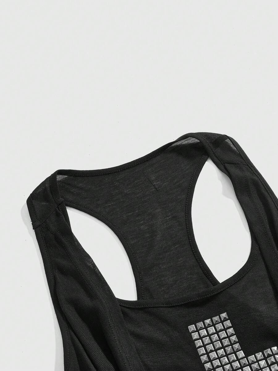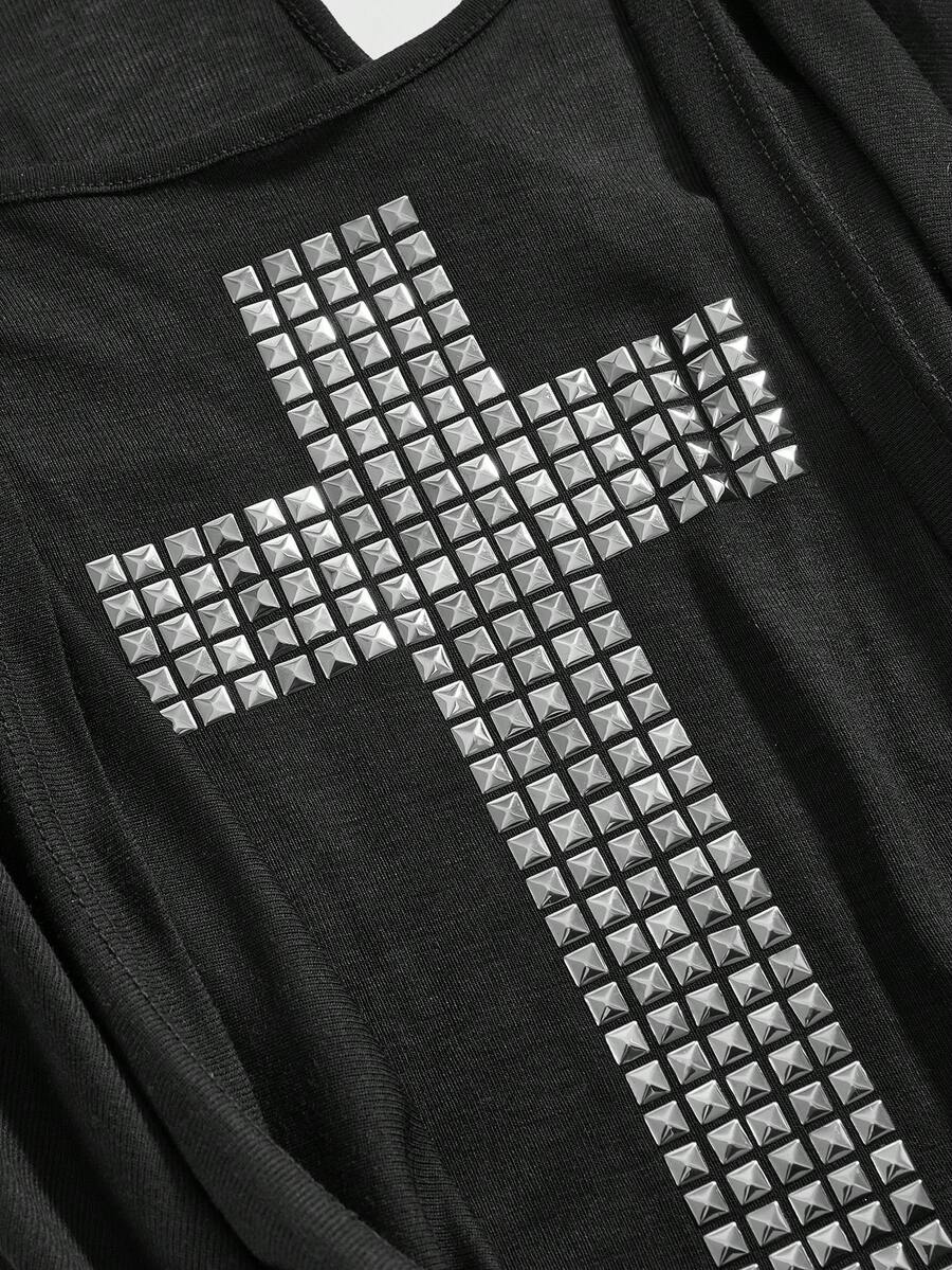 Grunge Punk Canotta aderente con scollo profondo a incrocio, con rivetti metallici in stile Y2K