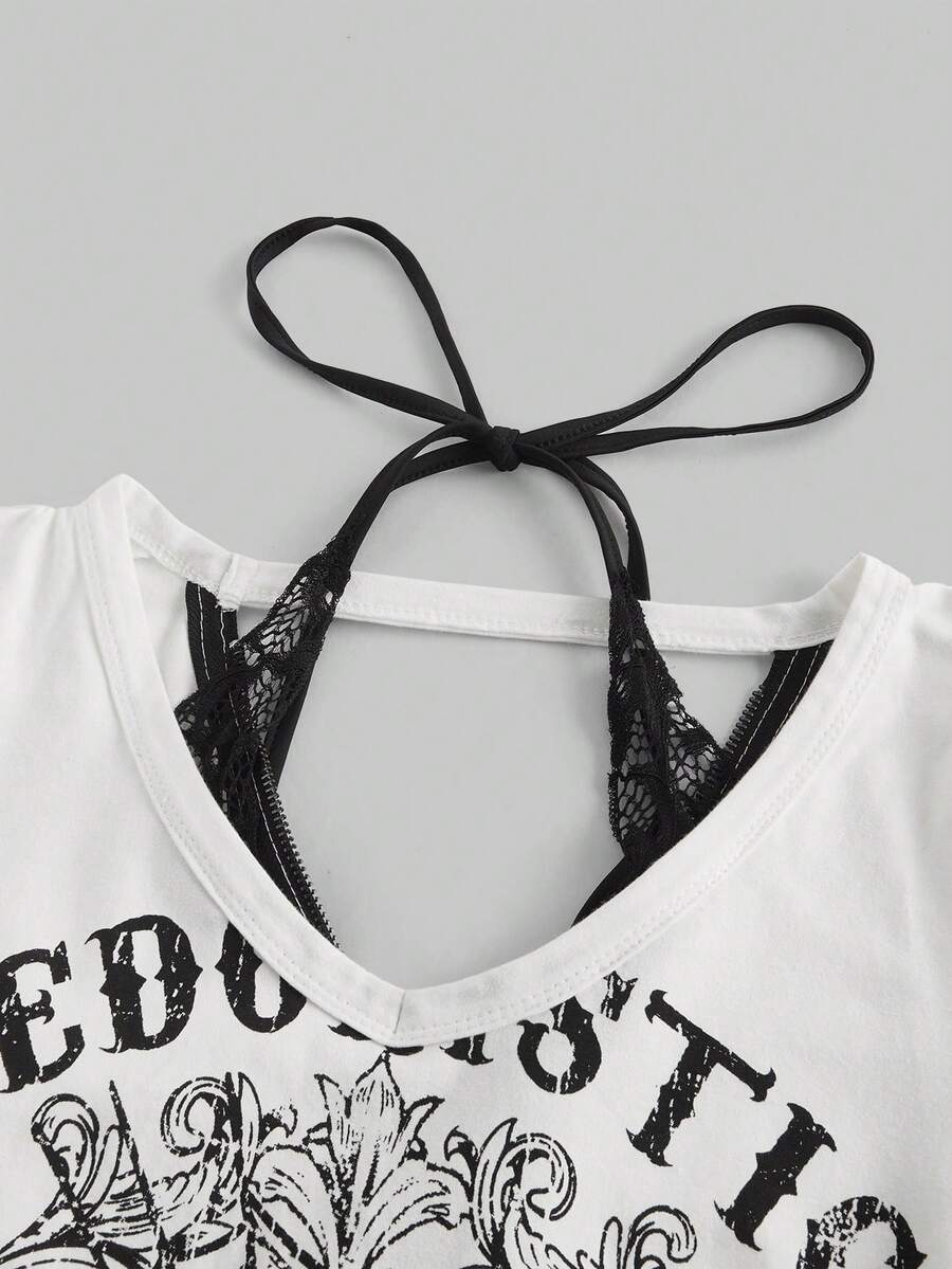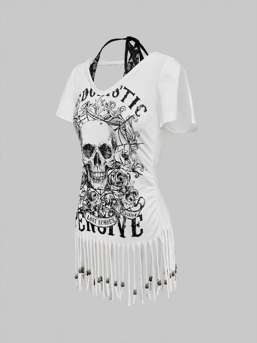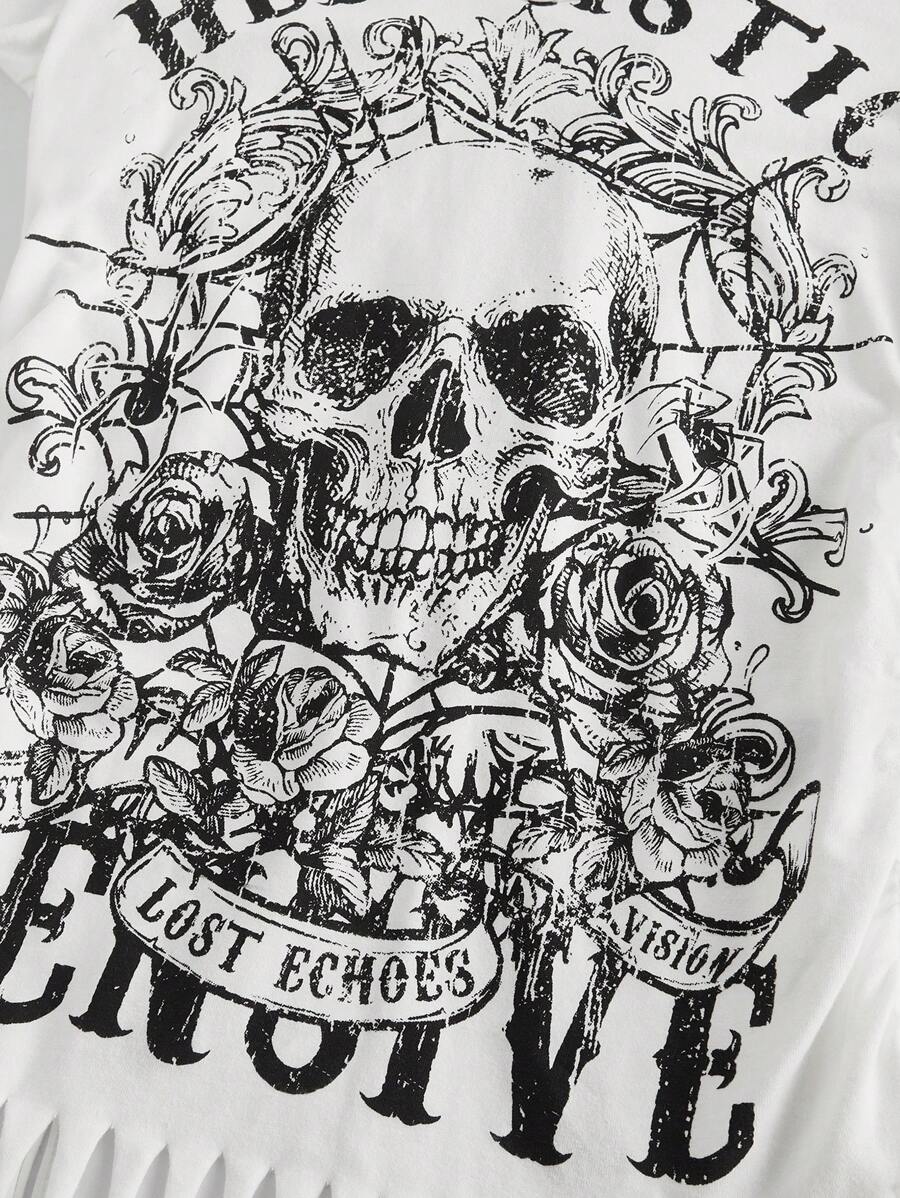 Grunge Punk maglietta retrò stile Y2K, gotico, con stampa teschio, 2 in 1, con frange, per Ognissanti