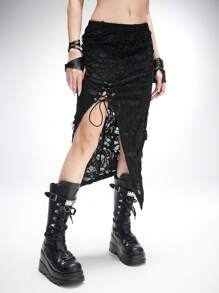 Grunge Punk Gonna attillata a vita ultra bassa con taglio, lacerata, apertura laterale alta e orlo con laccio, in stile Y3K