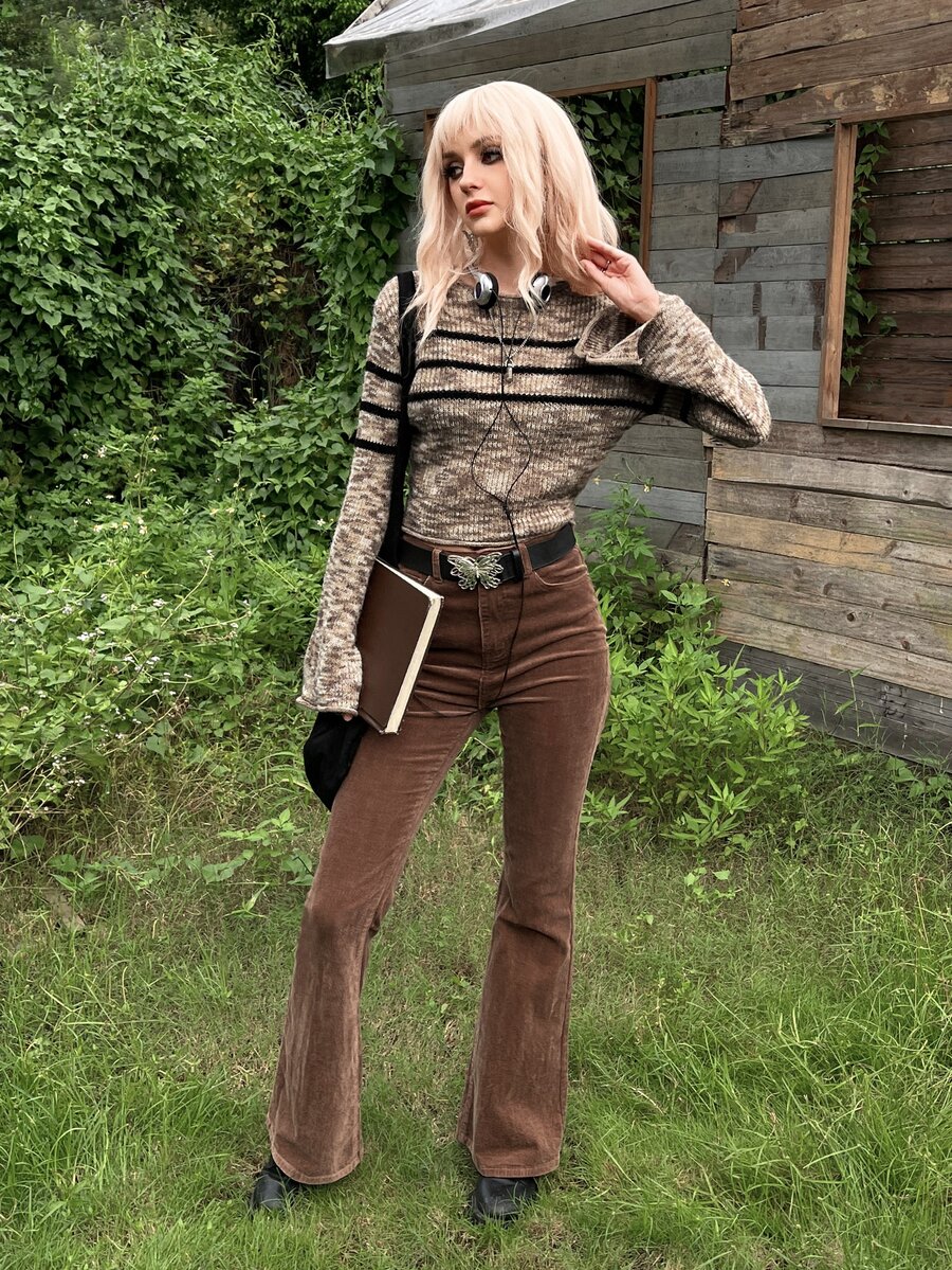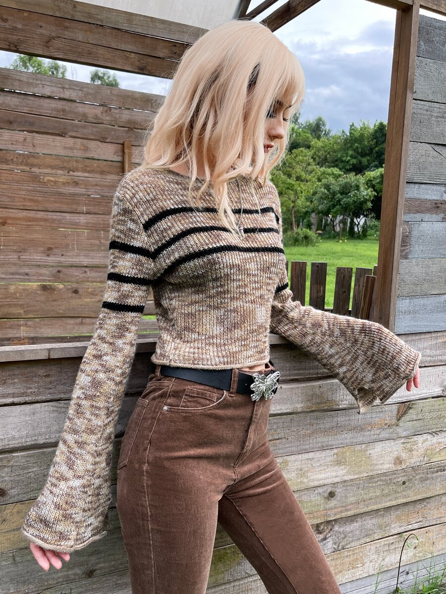 Maglione Grunge modelli righe space dye maniche a campana