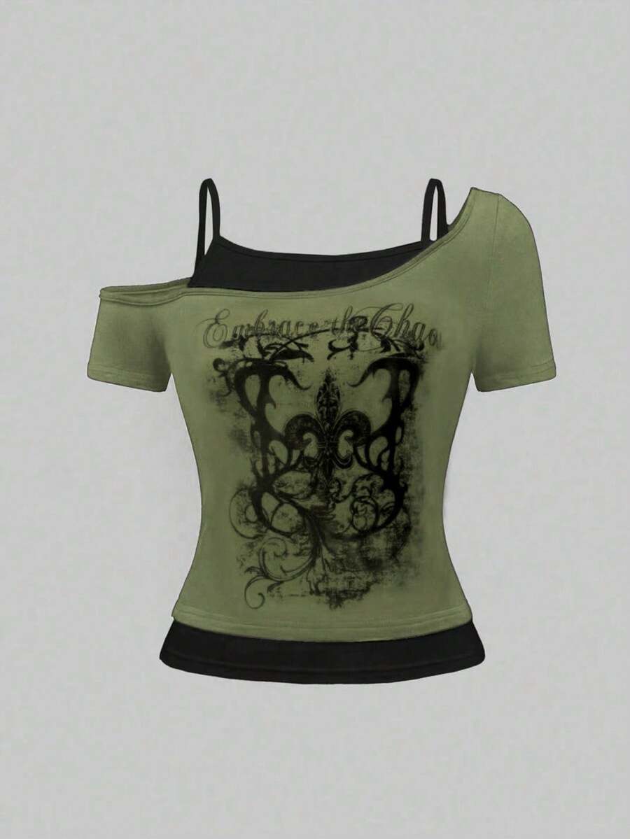 Grunge Punk maglieta da donna con stampa floreale retrò stile grunge, colori a contrasto, scollo a goccia, adatta per festival di musica rock