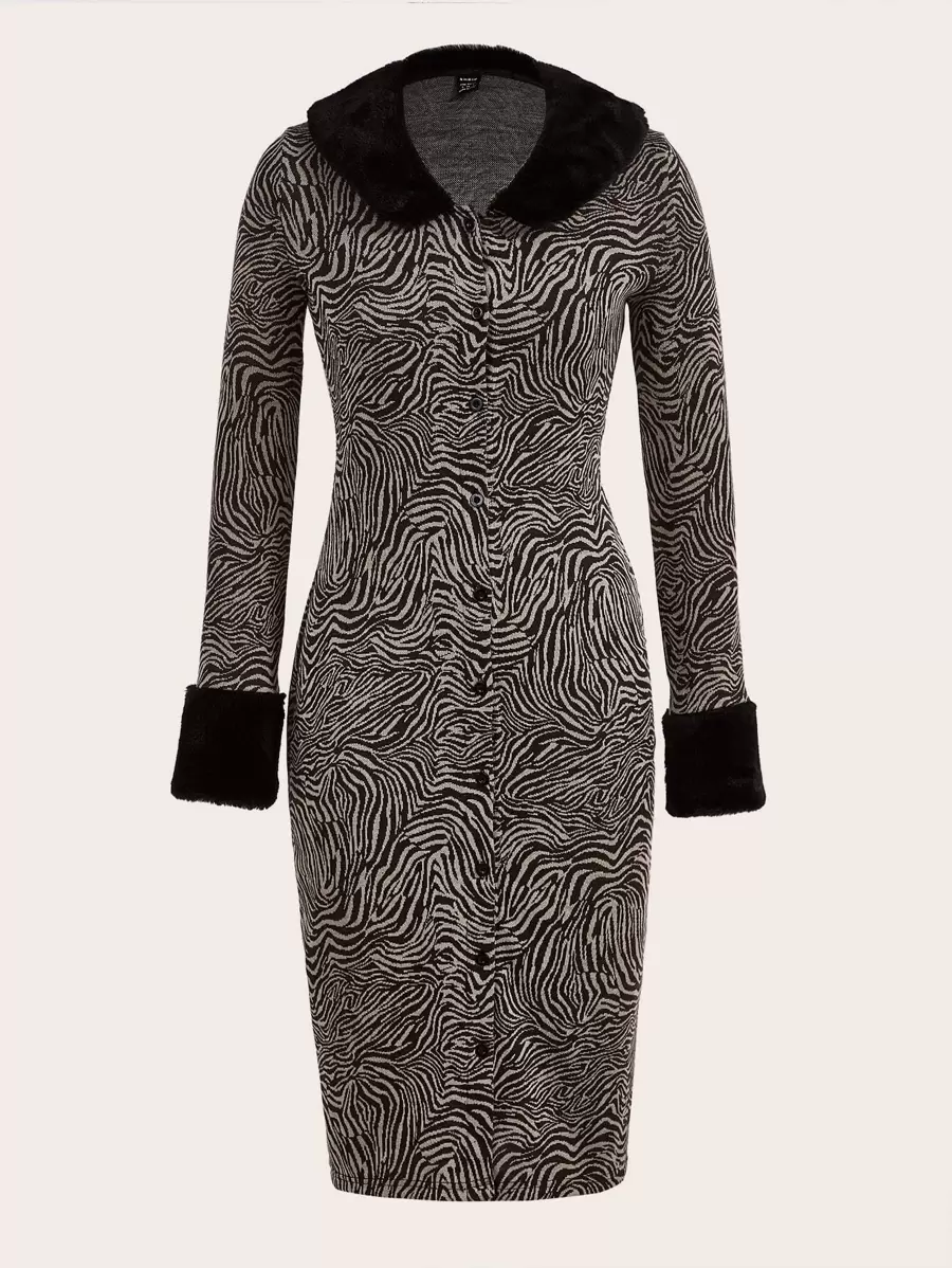 Cappotto grunge a righe zebra bordo sfocato monopetto