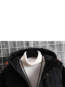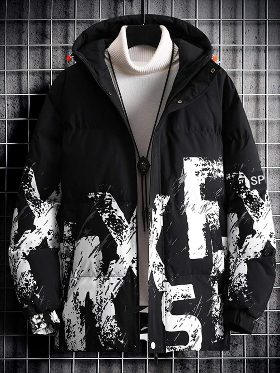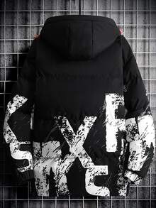 1 pezzo Cappotto imbottito con cappuccio con zip e cordoncino con grafica a lettera per uomo