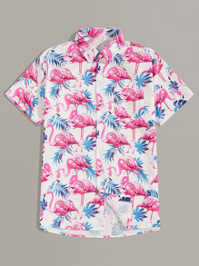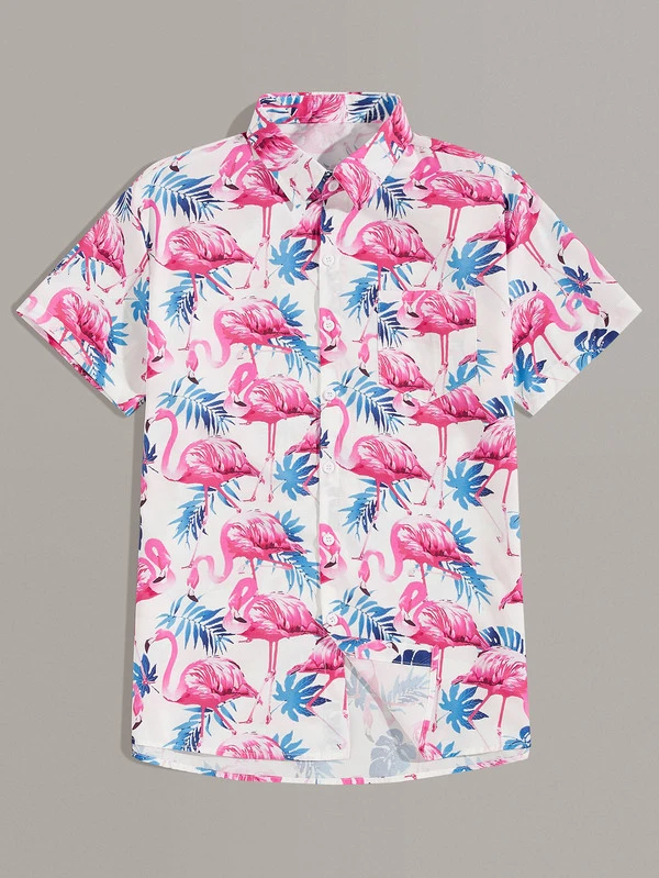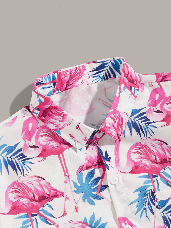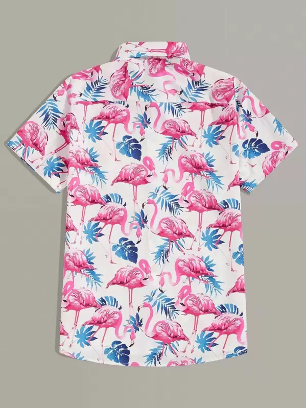 Uomo Camicia hawaii all over con stampa fenicottero