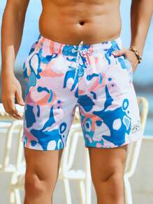 Trunks da nuoto stampato con toppa lettera con coulisse