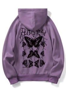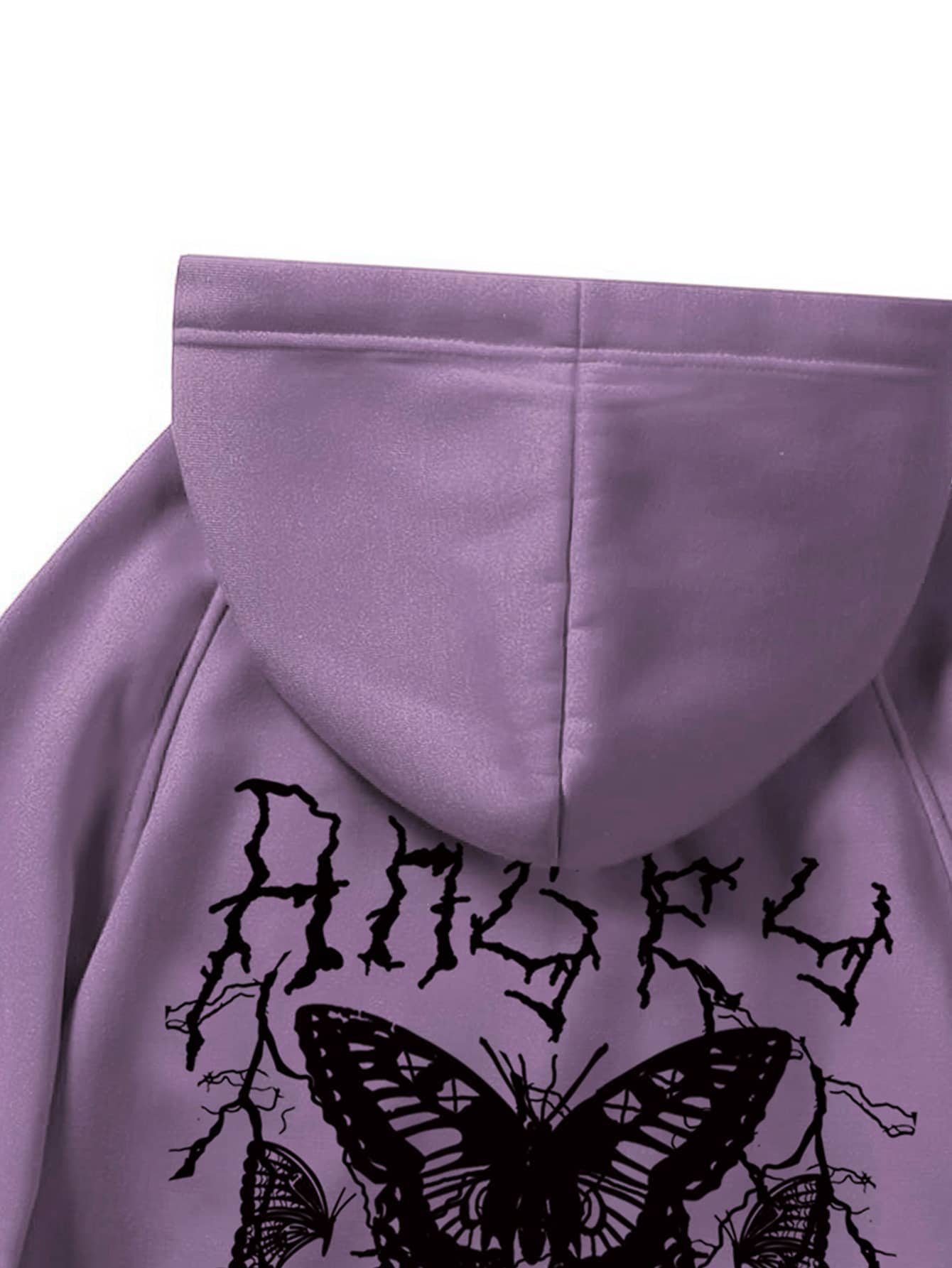 Ragazzi Felpa con cappuccio con stampa farfalla con coulisse