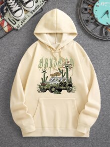 ragazzi Felpa termica con cappuccio auto e lettere con tasca a marsupio con coulisse