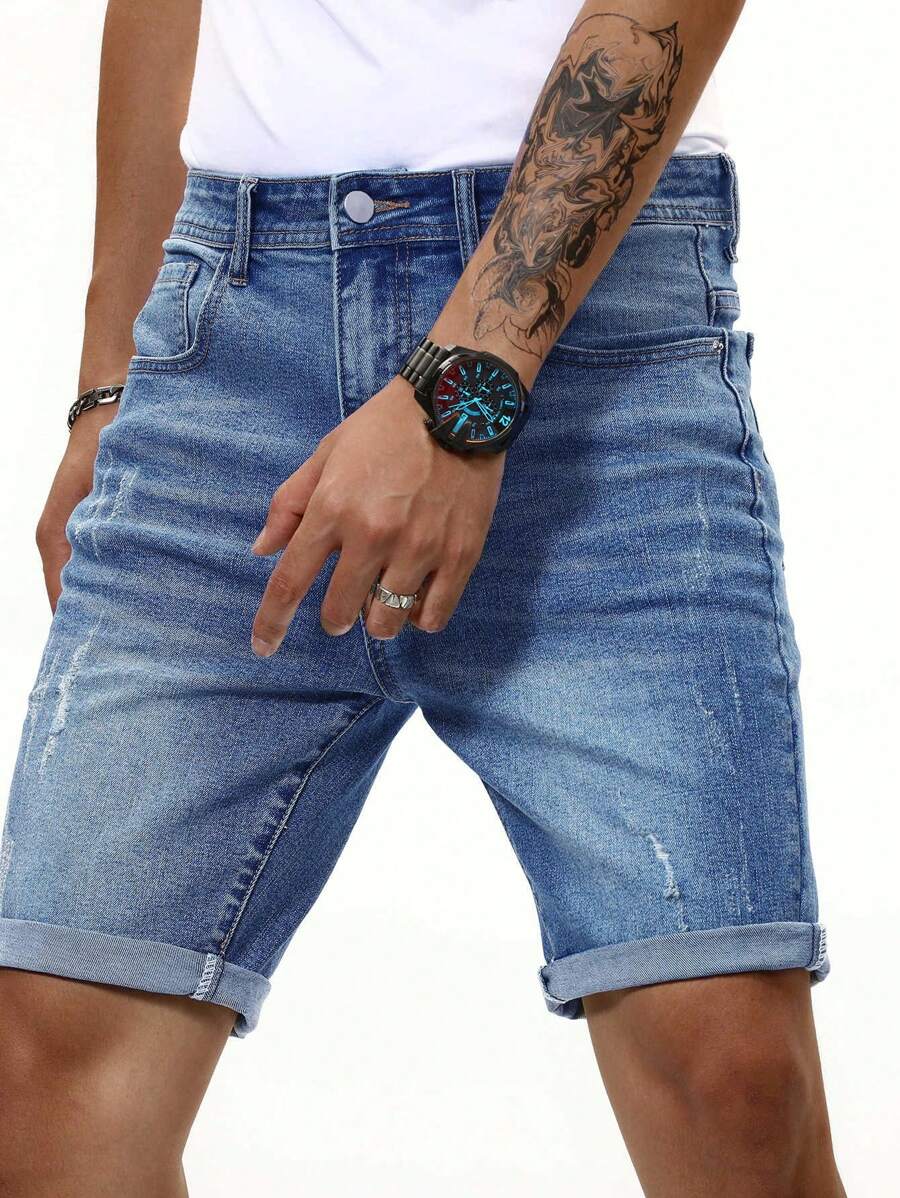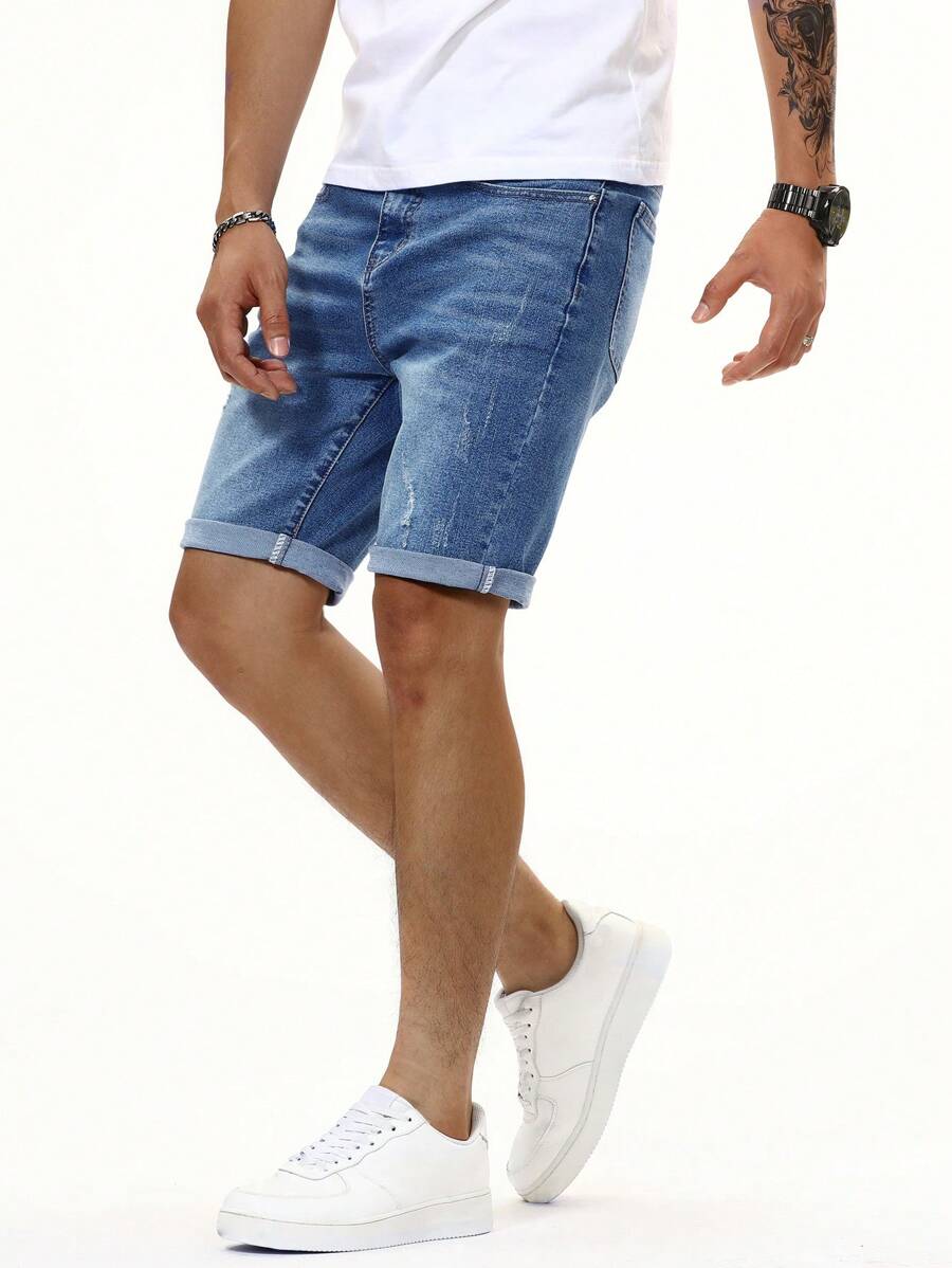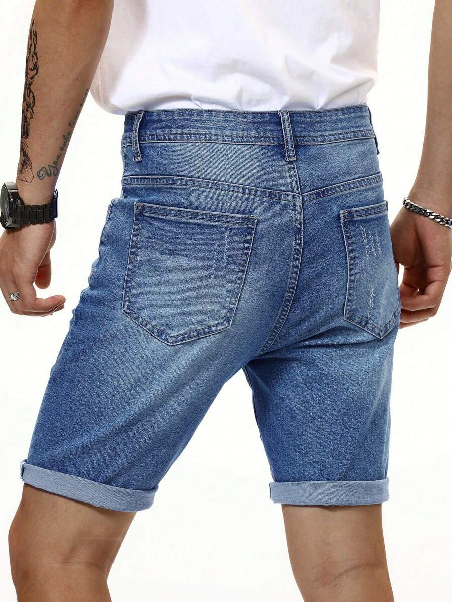 Pantaloncini in jeans lavati con baffi di gatto, pantaloncini in jeans semplici da lavoro, pantaloncini in jeans blu navy, adatti come regalo per il marito o il fidanzato